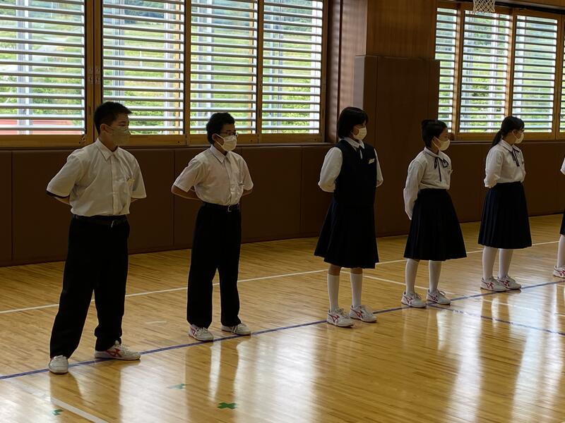 2022年6月3日 18時05分本日行った全会津中体連総合大会選手壮行会の様子です。まずは、選手入場です。ユニフォーム姿がステキです