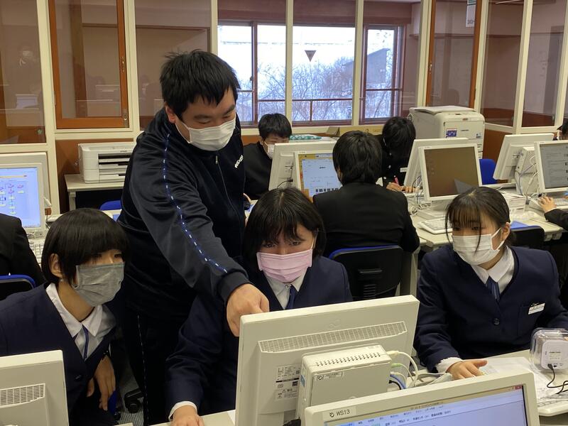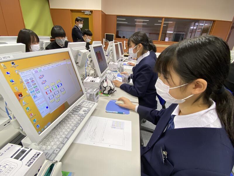 2022年12月22日 13時00分3年生の技術ではプログラミングについて学習しています。今日は、自分で製作したオーロラクロックにインストールする光や音のプログラムを考えました。何度もやり直したり、先生からアドバイスをもらったりしながら、自分好みのタイミングで光ったり、好きな音楽が流れたりするようにプログラミングしていました。