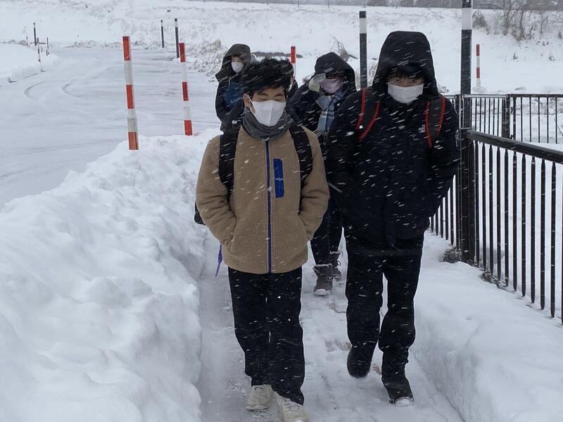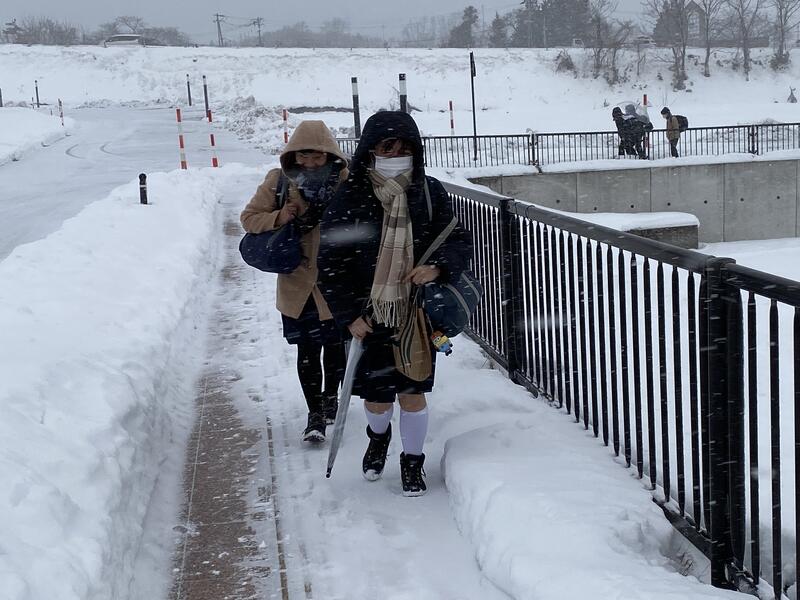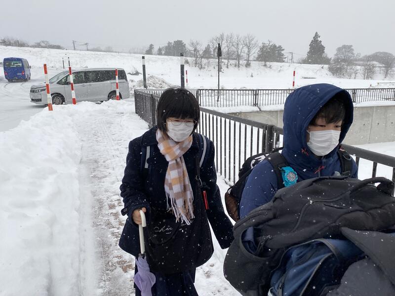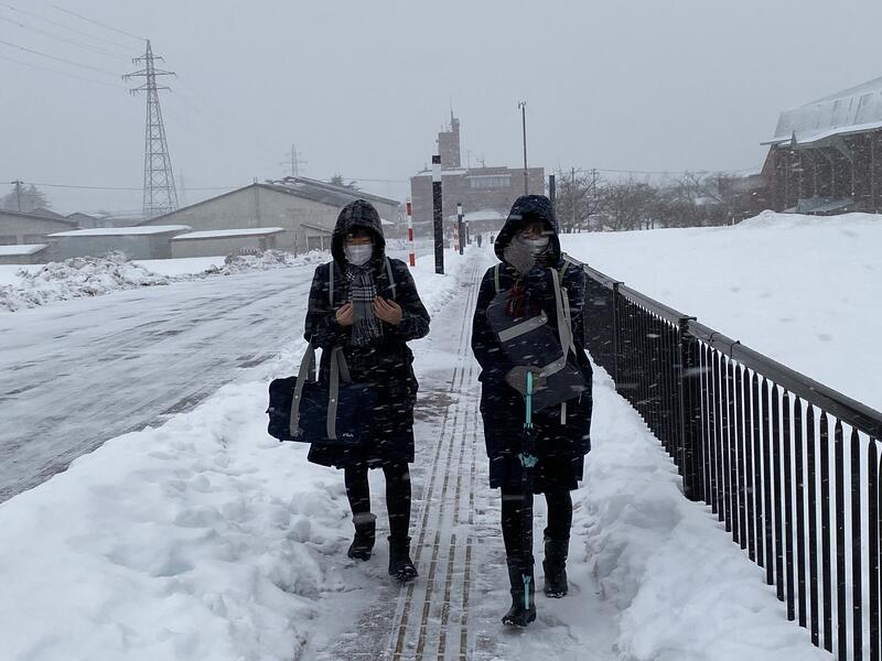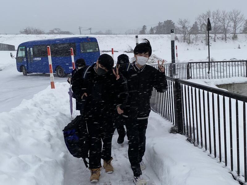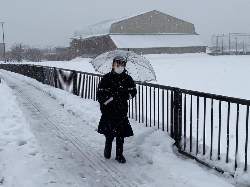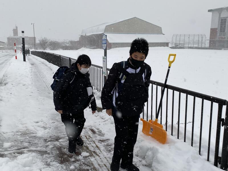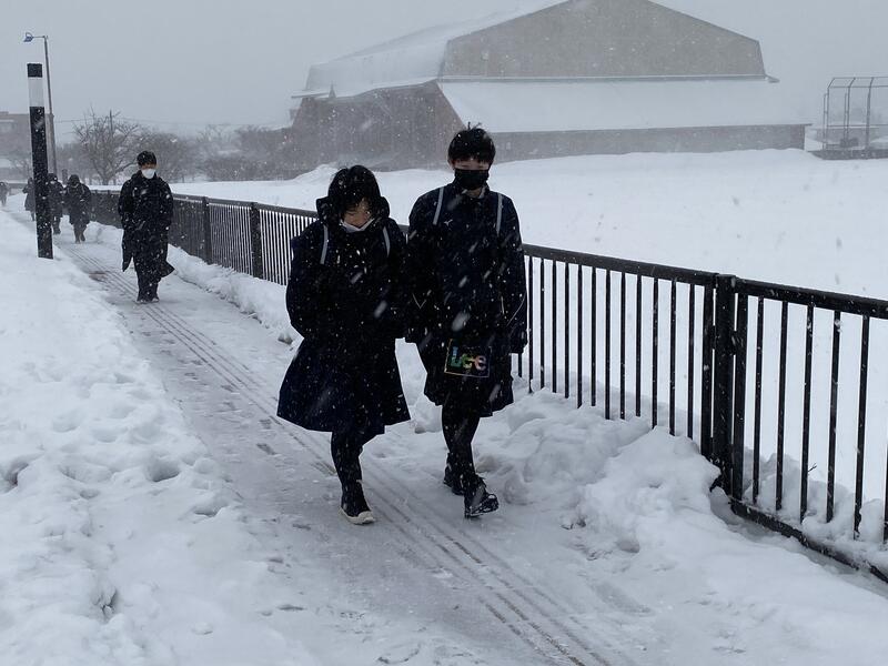 今朝の登校風景 2022年12月23日 08時40分 おはようございます 今日は2学期の終業式です。現在は太陽と青空も見えていますが、生徒たちが登校してきた頃は少し吹雪いていました それでも生徒たちは元気に登校してきました