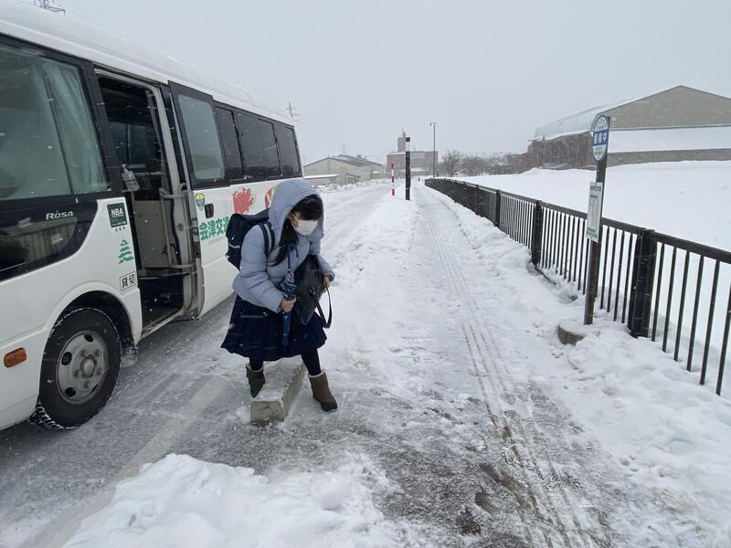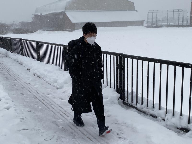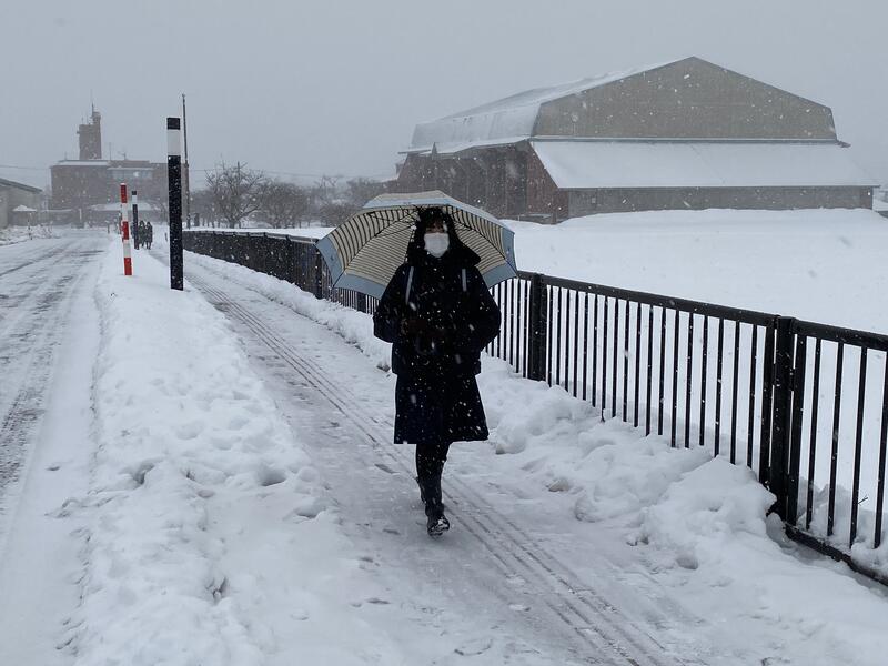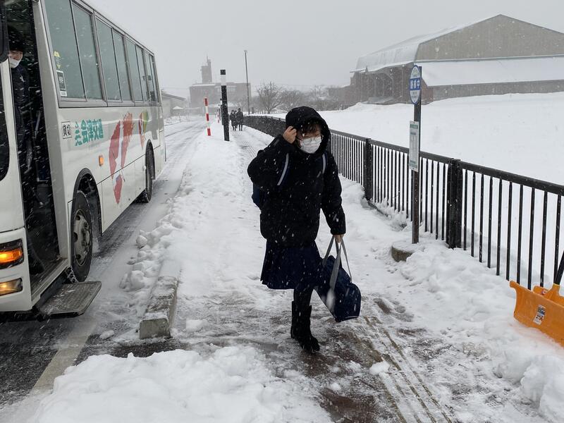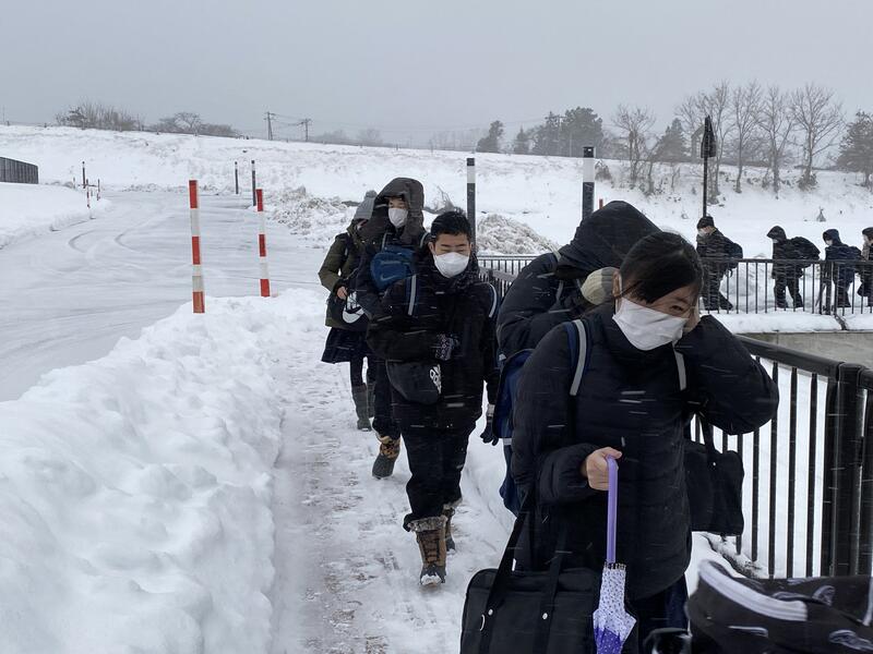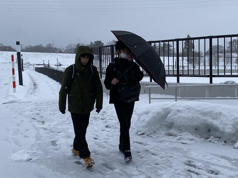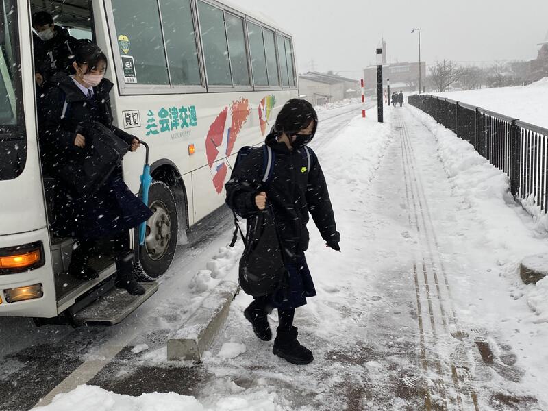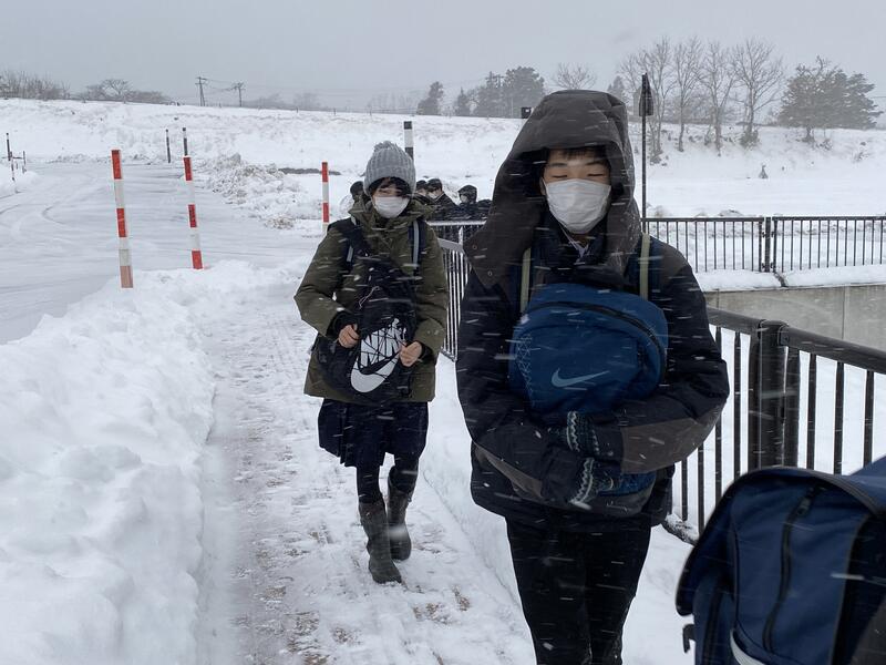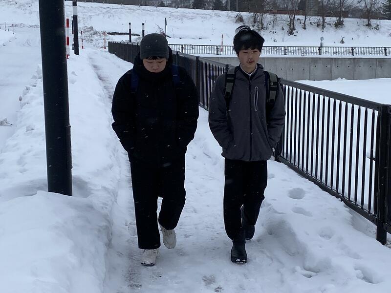 今朝の登校風景 2022年12月23日 08時40分 おはようございます 今日は2学期の終業式です。現在は太陽と青空も見えていますが、生徒たちが登校してきた頃は少し吹雪いていました それでも生徒たちは元気に登校してきました