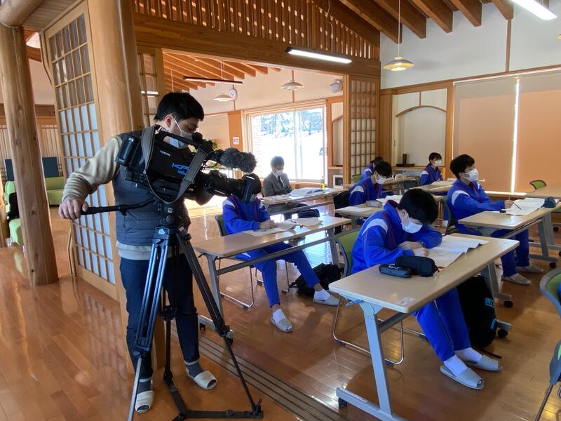 2022年12月28日 15時05分12/26から今日までの3日間、磐梯町教育委員会主催の3年生対象の公営塾「冬期受験対策講座」がまなびときで実施されました 10名以上の3年生が参加し、数学と英語の講座を受講しました。最終日の今日はKFB(福島放送)のテレビ取材も行われ、授業の様子の撮影や生徒たちへのインタビューが行われました。取材の様子は1/4(水)の夕方の「シェア!」で放送される予定です。