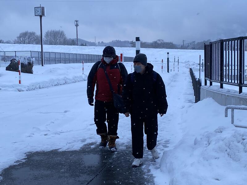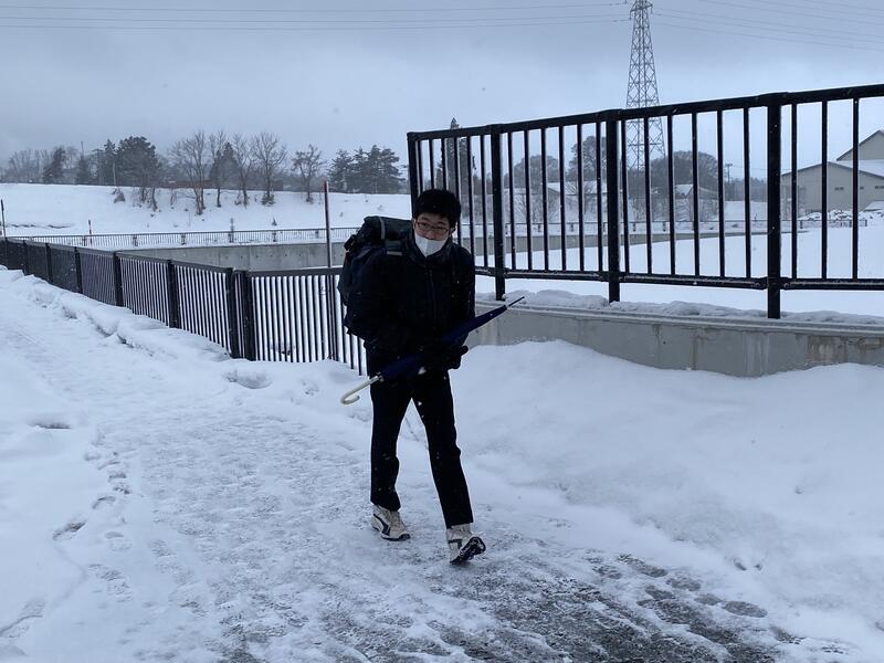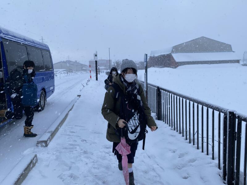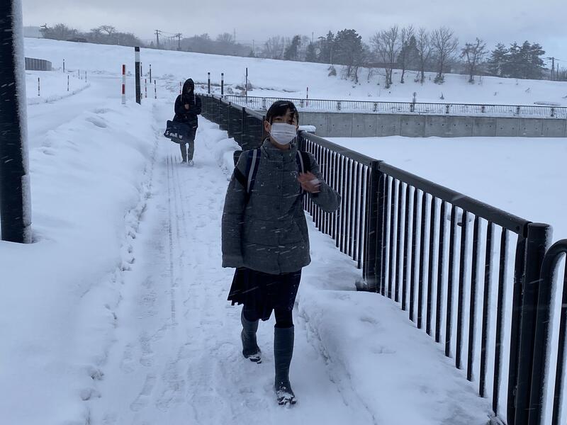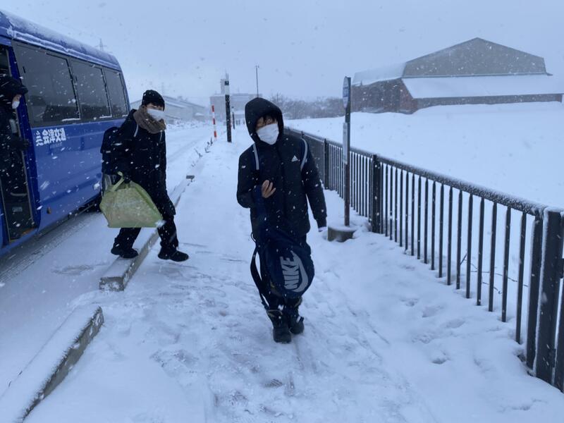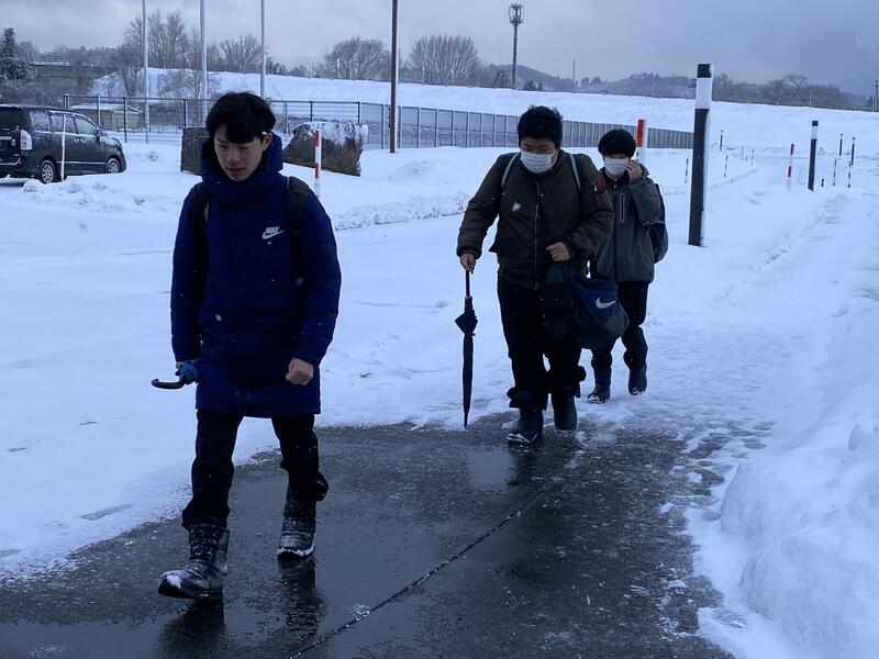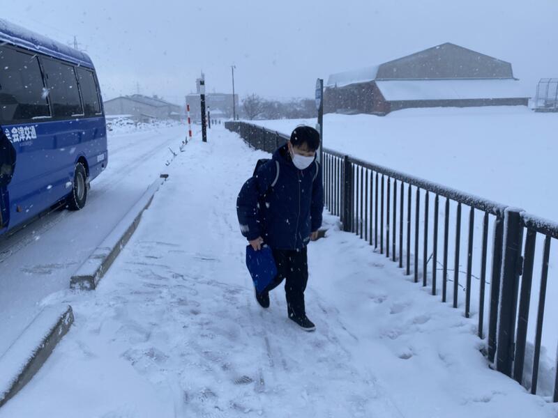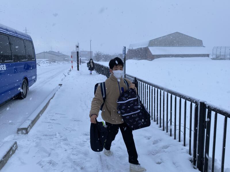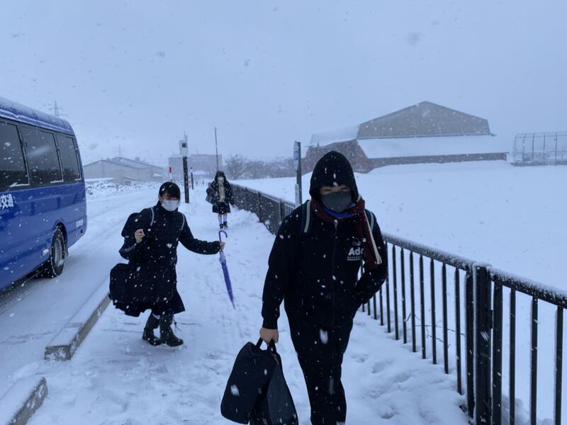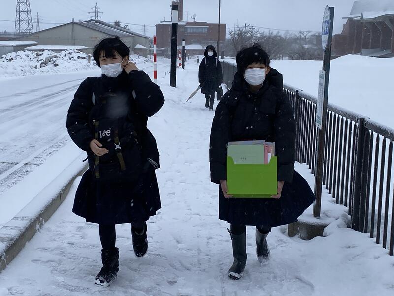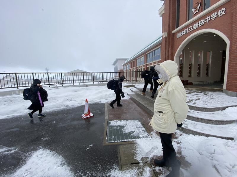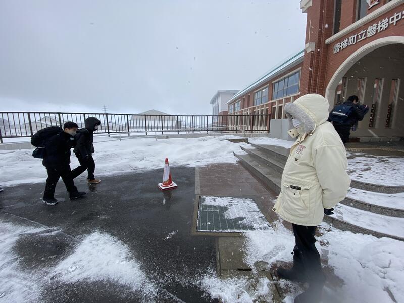 3学期初日登校風景 2023年1月10日 08時25分 おはようございます 磐梯町は吹雪の朝を迎えました。今日から3学期が始まります。吹雪の中を生徒たちが登校してきました 今朝は磐梯町学校教育アドバイザーの佐藤忠一先生も生徒たちの登校を見守ってくださいました。