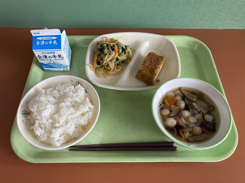 2023年1月27日 12時35分今日の給食は、ごはん、厚揚げの田楽、じゅうねん和え、こづゆ、牛乳でした。今日は「会津の料理」がテーマの献立でした。会津の郷土料理の代表と言えば、やっぱり「こづゆ」ですよね。お正月に「こづゆ」を作ったご家庭も多かったのではないでしょうか。ごちそうさまでした。