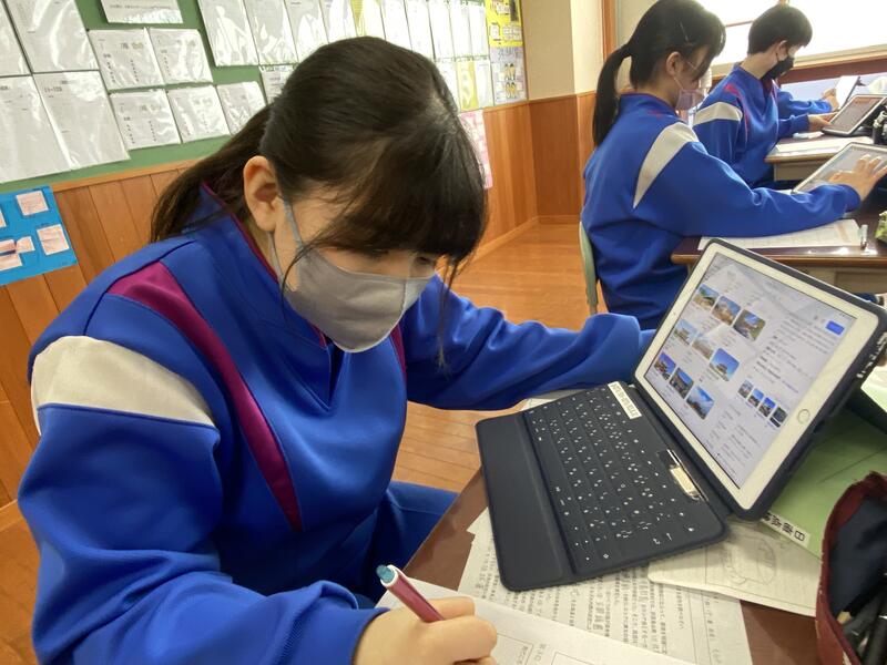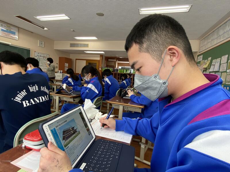 2年生は4月に修学旅行で行く奈良の人気観光スポットについて、タブレットを使って調べていました。慧日寺と縁があり、毎年訪れている興福寺や大仏がある東大寺、シカがたくさんいる奈良公園以外にも奈良には魅力のスポットがたくさんあったようです