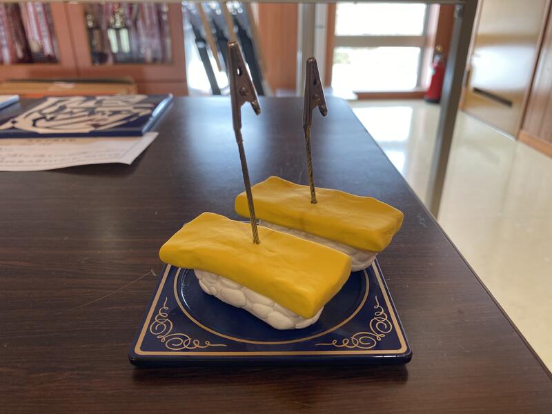 2組のK・Nくんは玉子のお寿司のクリップスタンドを制作しました。とってもおいしそうにできました