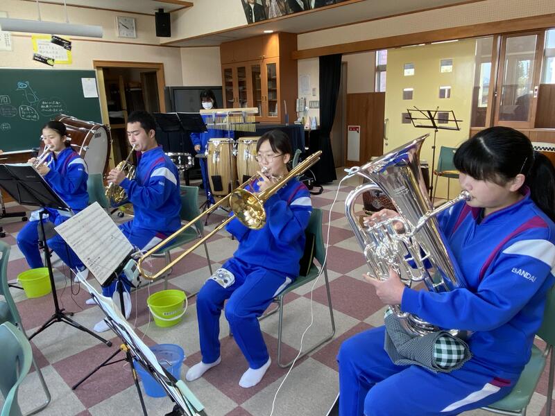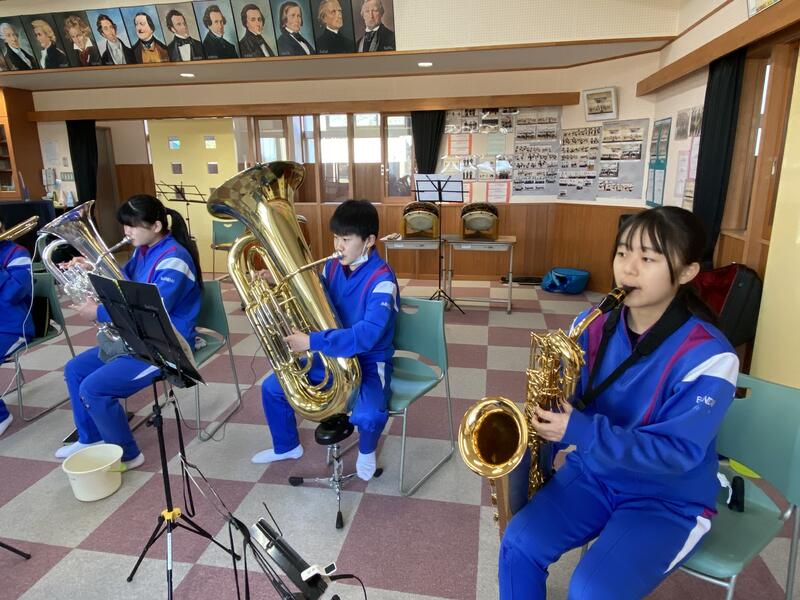 アンサンブル部は音楽室で全体練習を行っていました。先日の堺先生の特別レッスンでのアドバイスを生かして、ステキなハーモニーを奏でていました 来年度もコンクールや中体連の選手壮行会などで、聴いていて心地のよい、ワクワクするような聴いている人を笑顔にする素晴らしい演奏を披露してくれることを期待しています。これからも顔晴れ、アンサンブル部
