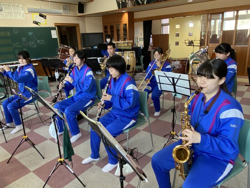 2023年3月30日 14時35分アンサンブル部は音楽室で全体練習を行っていました。先日の堺先生の特別レッスンでのアドバイスを生かして、ステキなハーモニーを奏でていました 来年度もコンクールや中体連の選手壮行会などで、聴いていて心地のよい、ワクワクするような聴いている人を笑顔にする素晴らしい演奏を披露してくれることを期待しています。これからも顔晴れ、アンサンブル部