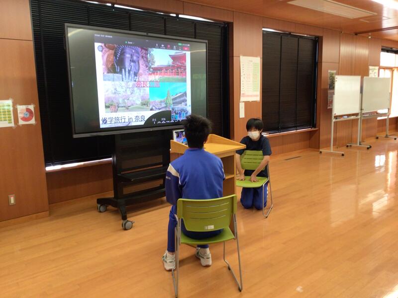 その後、3年生からは修学旅行のようすについて、各班が発表しました。