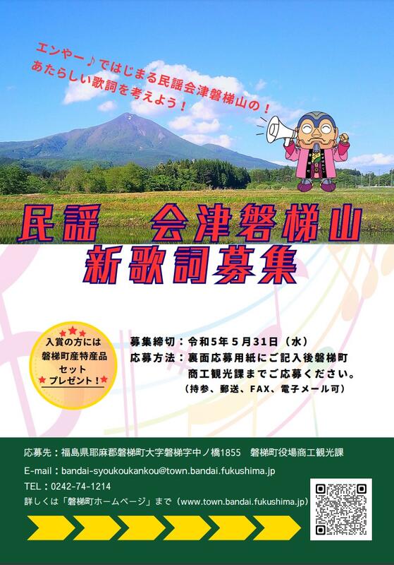 2023年5月26日 10時21分磐梯町役場で「民謡 会津磐梯山の新歌詞」を募集のチラシが学校にも先日届きました。