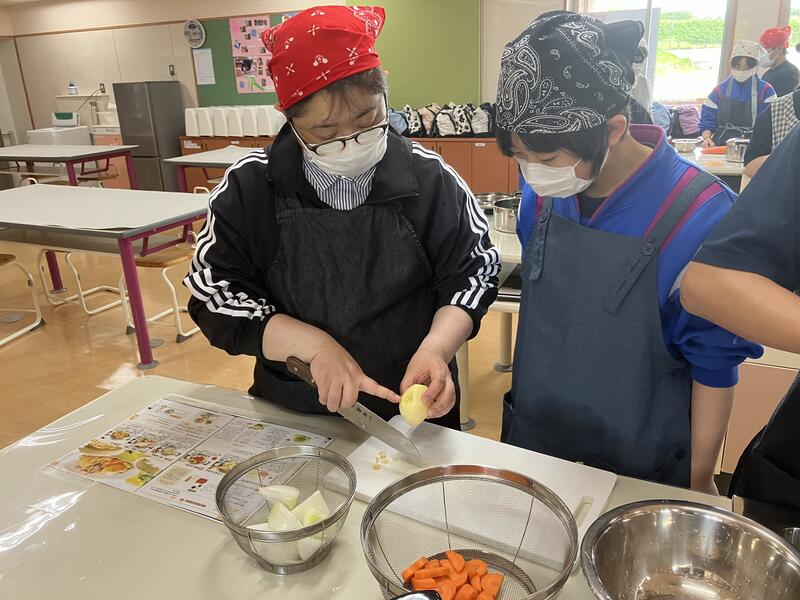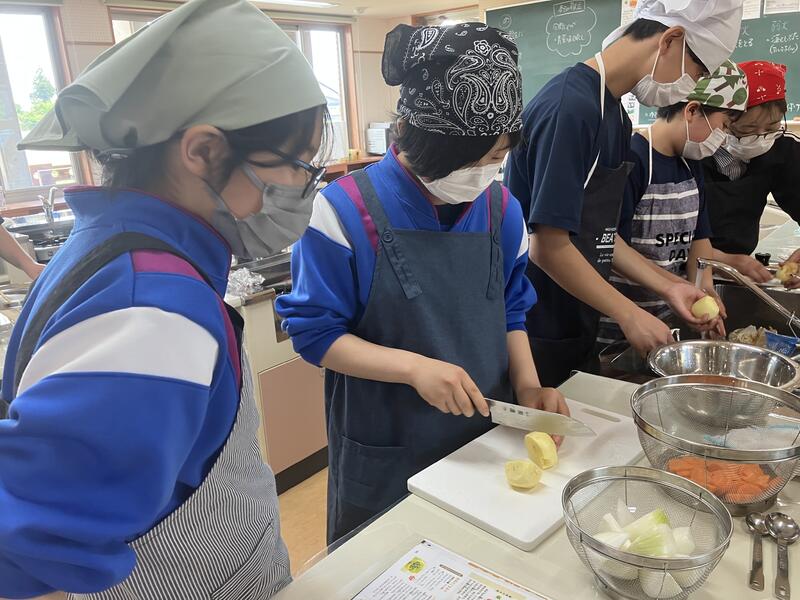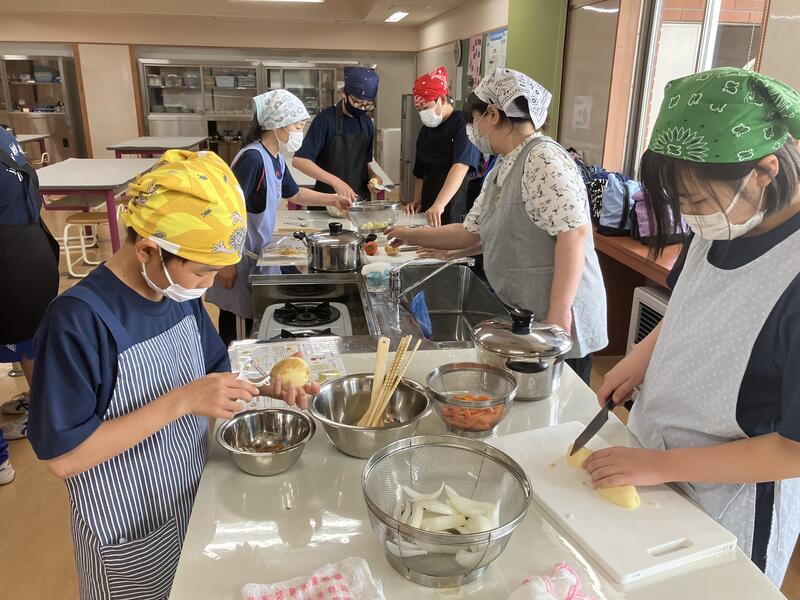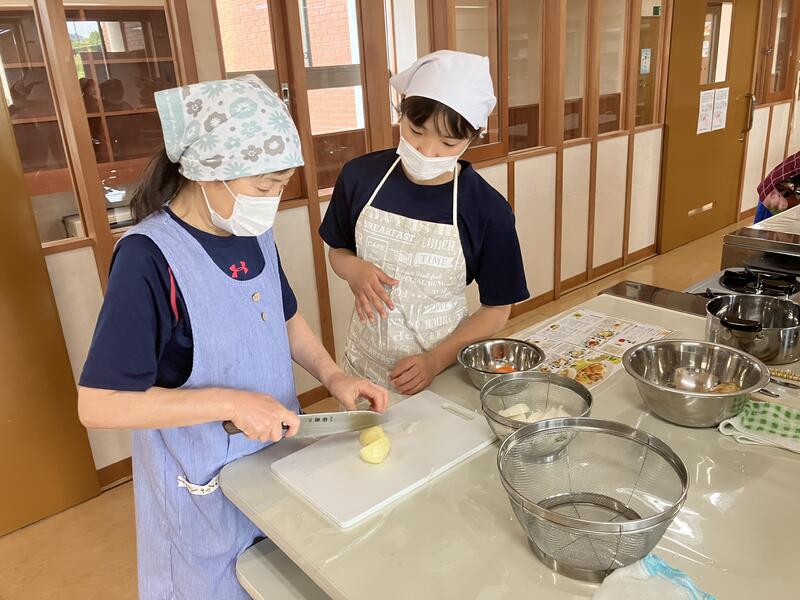 家でお手伝いをしていてすごく手際のいい子や、一生懸命ジャガイモの皮むきに集中している子など、机に座っての授業では見えない姿が見えるのが、調理実習のいいところですね。