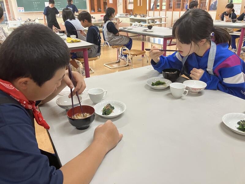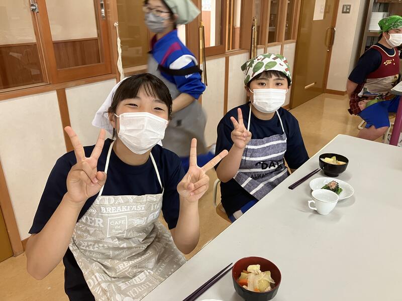 「おいしい!」「玉ねぎが柔らかい」「ちょっと薄かったかな」など、それぞれ自分の作った料理の感想を言い合いながら、楽しく会食しました。