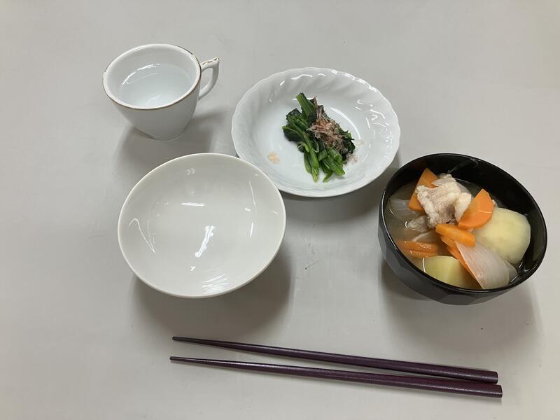 メニューは同じく「肉じゃが」と「ほうれんそうのおひたし」です。