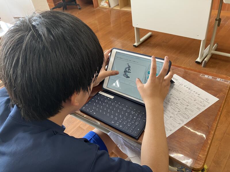 2023年6月6日 11時59分1年生の理科の時間では、タブレットでデジタルドリルに取り組んでいました。