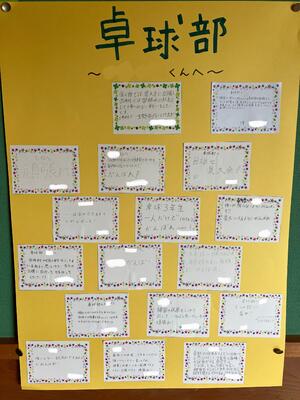 卓球部は3年生が一人だけなので、Hくんへのメッセージになっています。