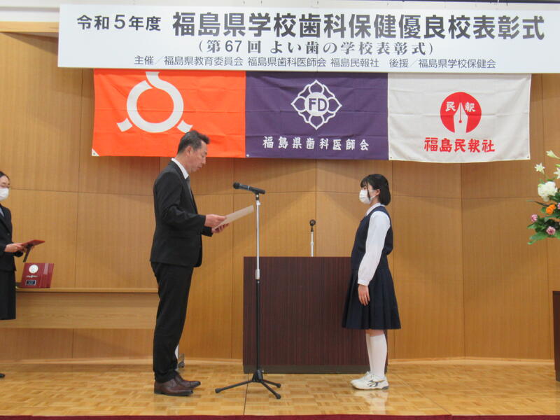 2023年6月9日 09時20分昨日、歯科保健優良校の表彰式が福島市で行われ、学校の代表として3年生の保健委員長が参加しました。