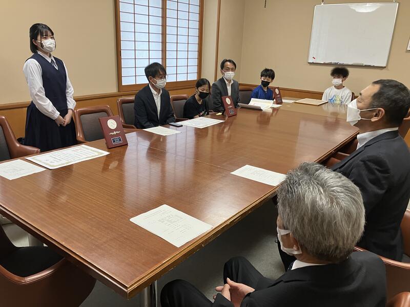 表彰式から戻った後は、町役場で副町長様に受賞の報告を行いました。