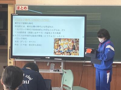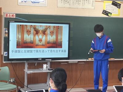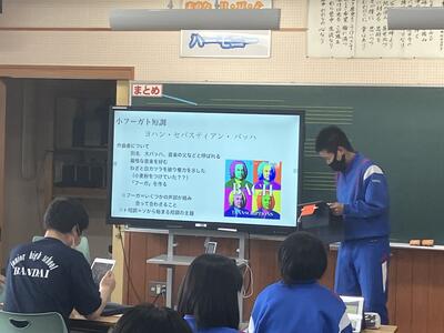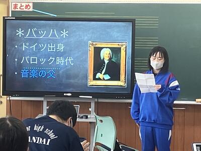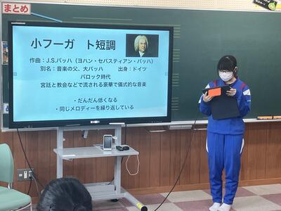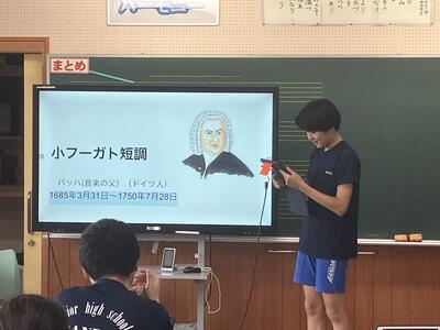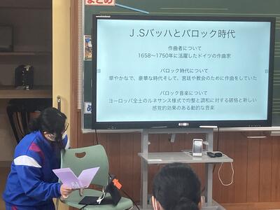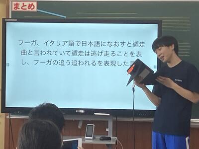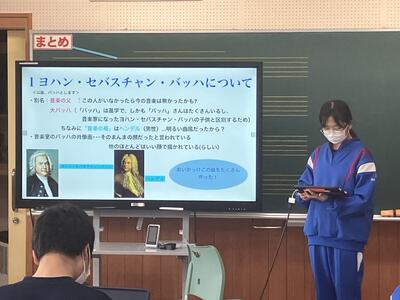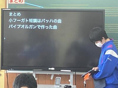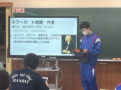 2023年6月9日 14時36分今日の2年生の音楽は、授業で学んだ「小フーガ ト短調」について、それぞれがプレゼンテーションとしてまとめた内容の発表でした。