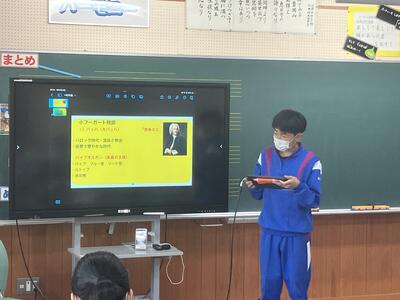 全員の発表までは終わりませんでしたが、要点を絞って説明する人、スライドを見やすく工夫している人、じっくりと調べた内容をまとめている人など、学習した内容は同じものでも、それぞれの個性が見えるまとめ方になっていて、とても楽しい発表会でした。