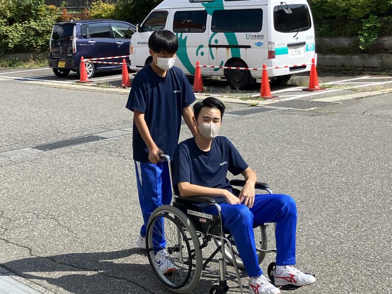車椅子を押したり、自分で操作する体験を通して、声をかけながら動かしたり、一人では操作が難しいことなど,とても丁寧に教えてもらっていました。