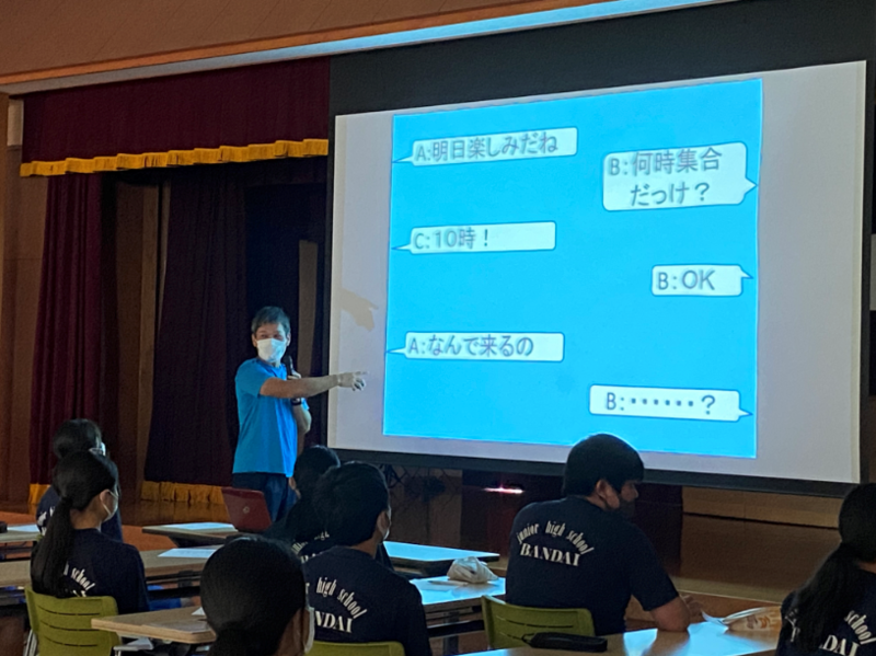 2021年7月19日 12時54分本日の4校時目に、ケータイ・スマホ安全教室を実施しました。磐梯中生へのアンケート結果によるスマホ等の利用状況の結果や、SNSを利用する際に気をつけなければならないことなどについて、生徒指導担当の先生から話がありました。また、ネット依存度合いがわかる調査を実際にやってみました。まもなく夏休み入ります。スマホやSNS等を利用する時間や機会も増えると思われます。ぜひ、安全な使い方をしてほしいと思います。