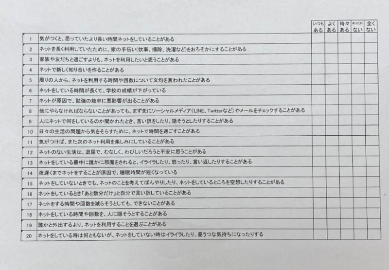 あなたのネット依存度をチェックしてみませんか?
