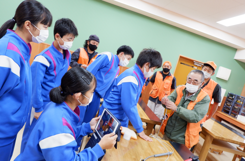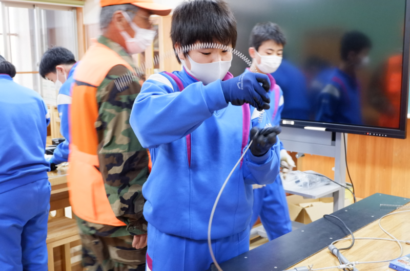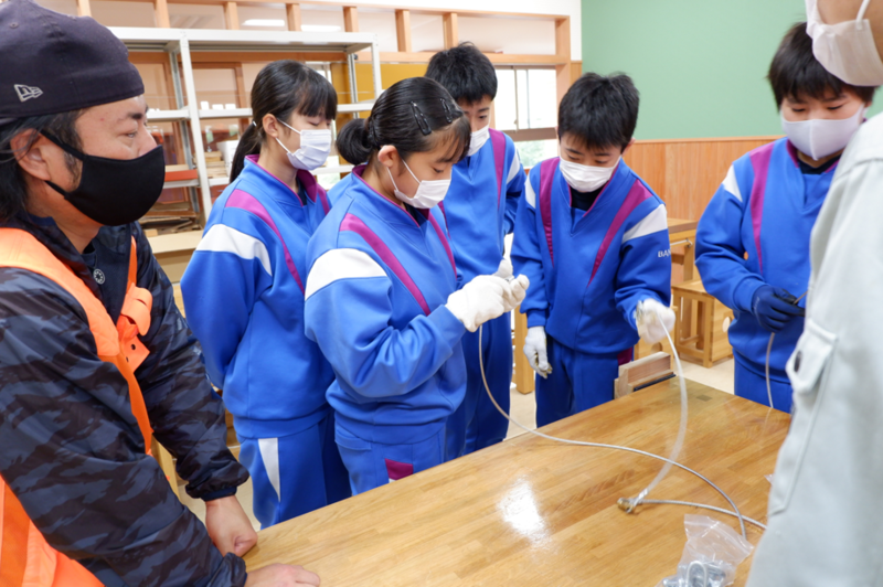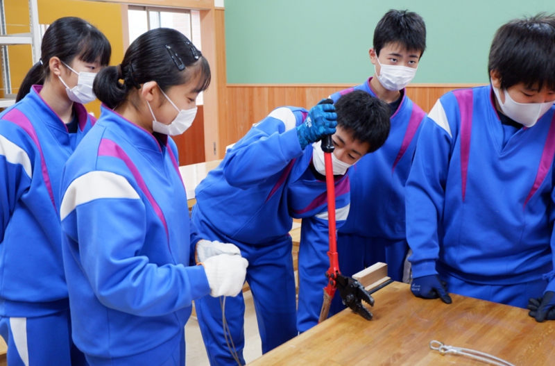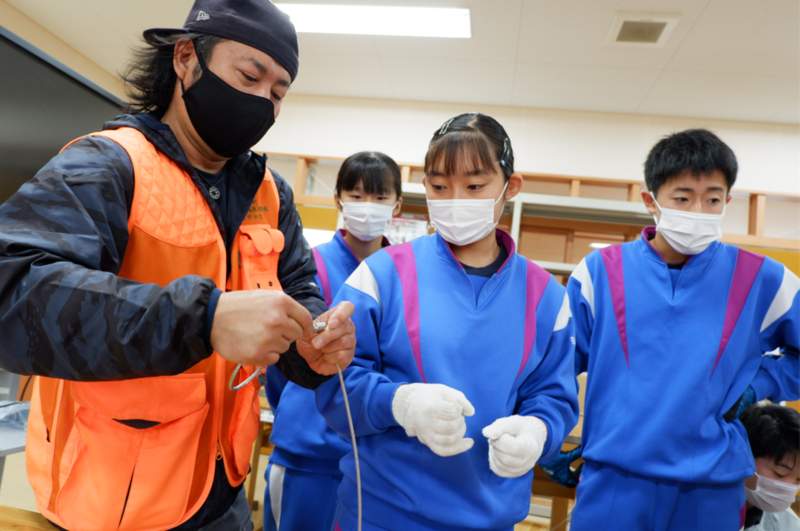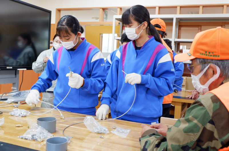 鳥獣被害対策に取り組んでいるグループは、町猟友会のみなさんに、罠の作り方を教えていただき、実際に罠作りに取り組みました。