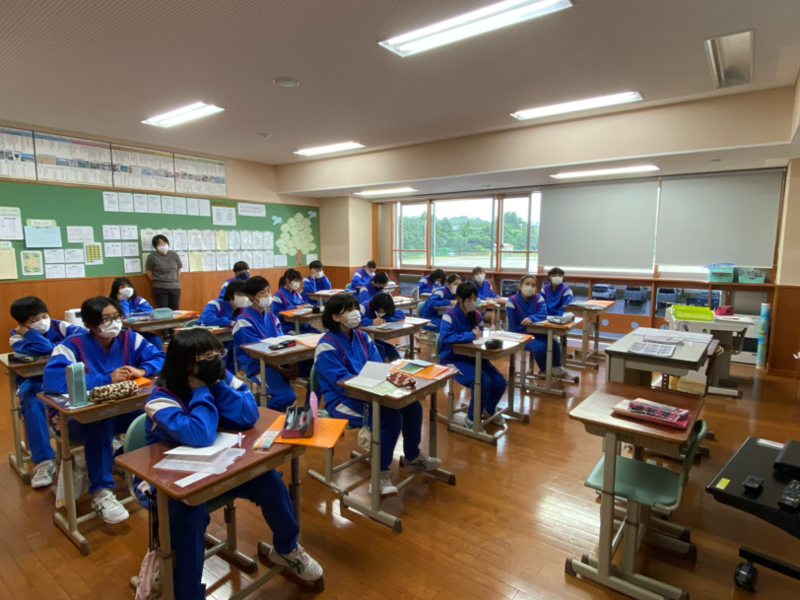2021年9月8日 14時55分総合的な学習の時間、1年生の教室をのぞいてみると、モニターを食い入るように見つめる生徒たち。