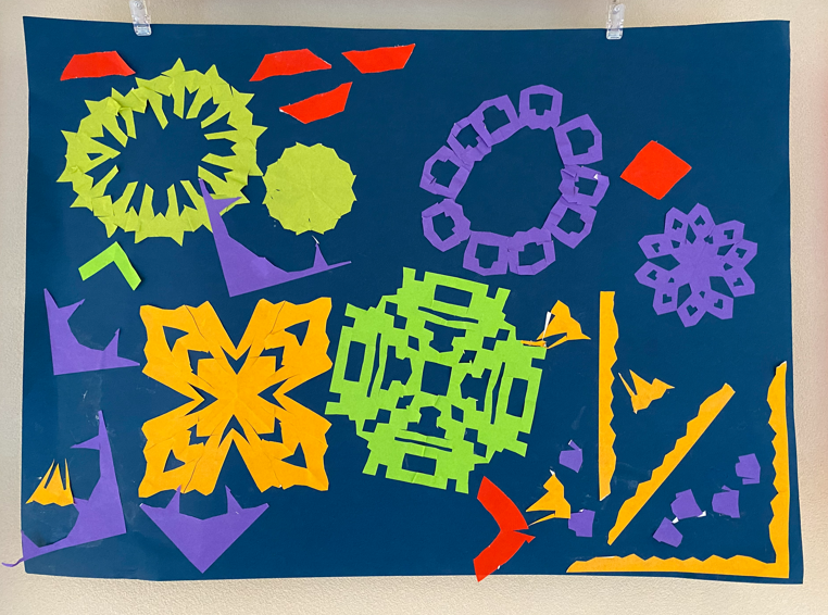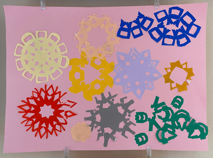 切り絵が上達しています(^^)/ 2021年10月8日 12時10分 特別支援学級のK・Nくんは、美術の授業の最後に毎時間切り絵に取り組んでいます。ハサミの使い方や切り方が、やるたびに上達しています。K・Nくんが作った作品が展示されています 「世界に一つだけの花」
