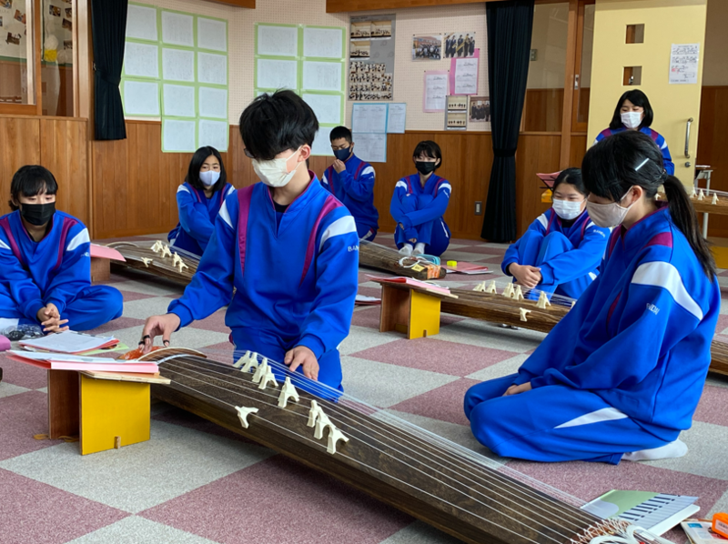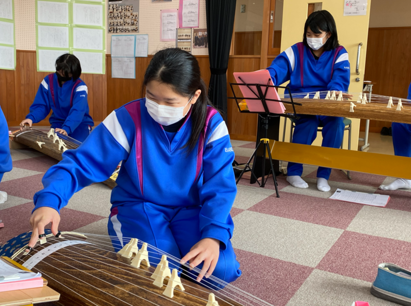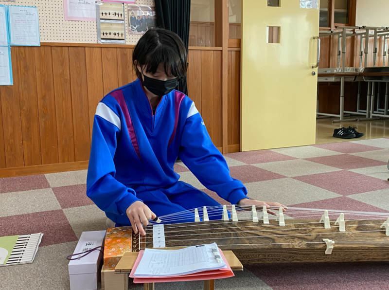 1年生の音楽での「琴」の授業も佳境を迎えました! 今日はいよいよ一人ずつ「さくらさくら」を歌いながら演奏するテストです みんなの前で演奏するので緊張していたようですが、全員、最後まで弾くことができました すばらしい上達ぶりです 授業の最後には、みんなで「さくらさくら」を演奏しました