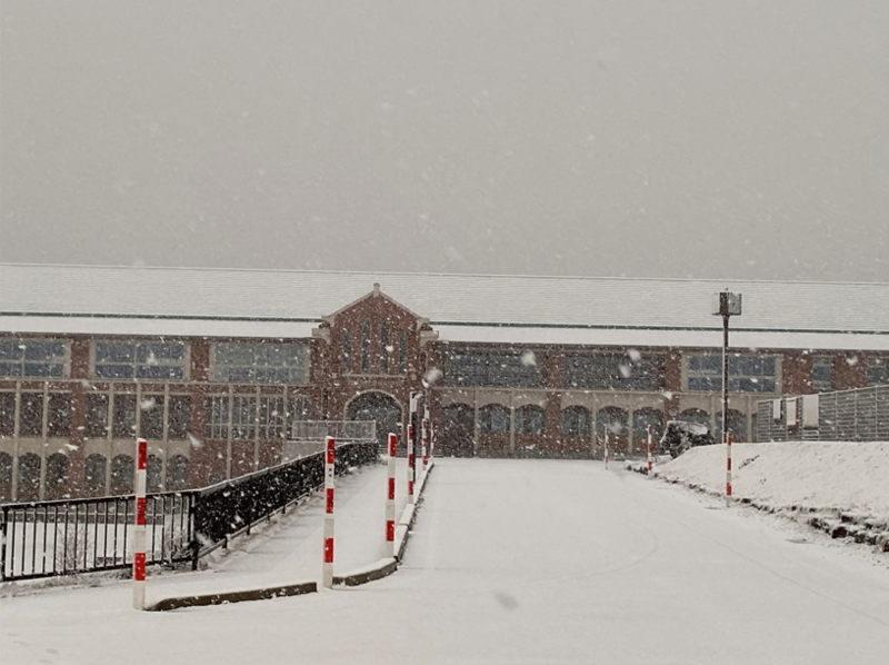 2021年11月24日 07時15分おはようございます。今朝は今シーズン初めての積雪で、学校周辺は一面の銀世界となりました 生徒の皆さん、時間にゆとりをもって気をつけて登校してくださいね。ドライバーの皆さんは、「3つの10(十分な車間距離・10分早めの出発・10%の減速)」で安全運転をお願いします