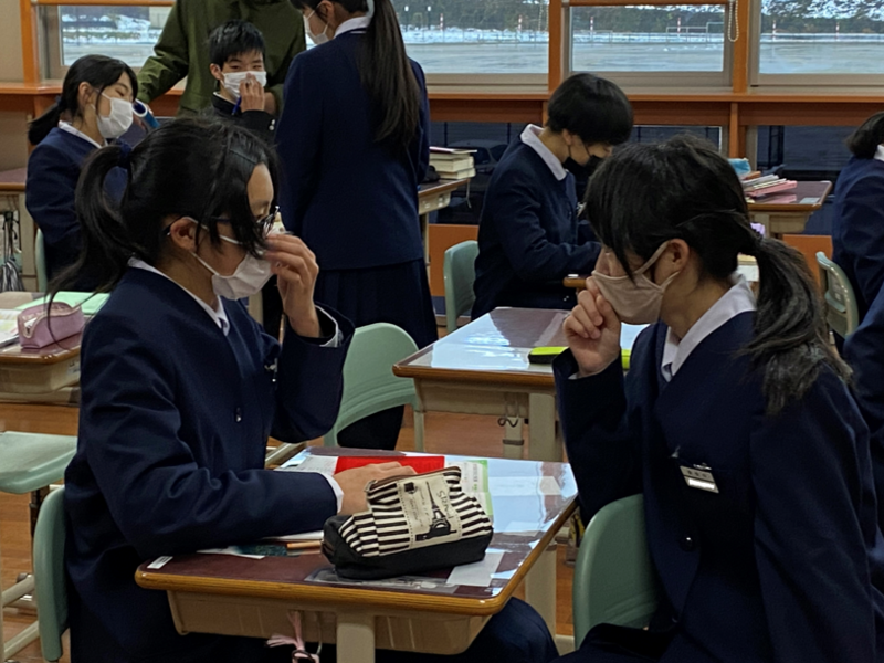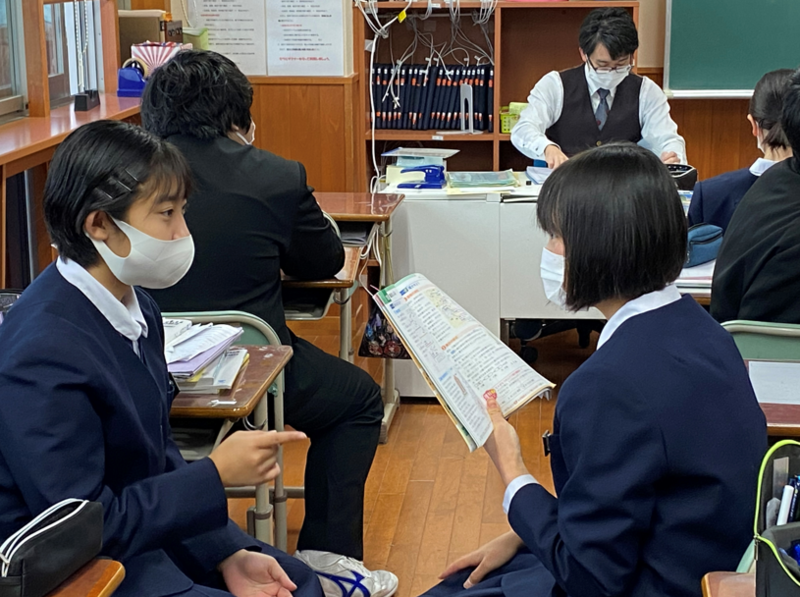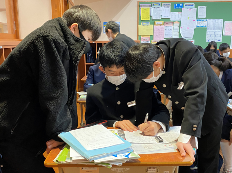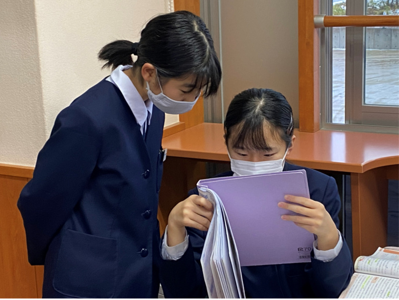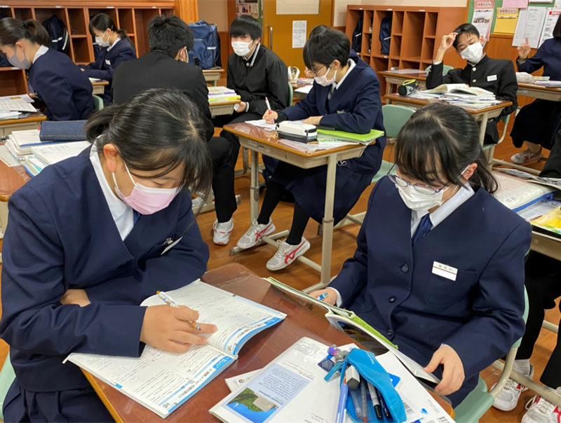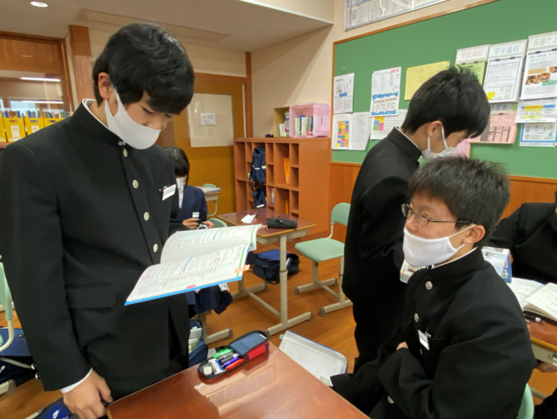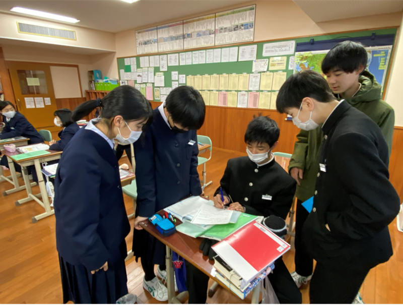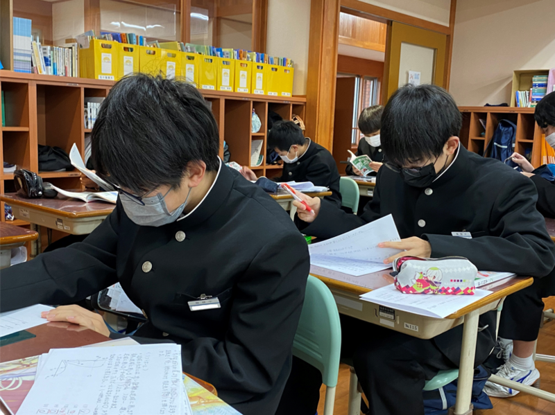 期末テスト直前の光景 2021年11月25日 08時55分 今日から2学期期末テストが行われます。今朝、教室に行ってみると友達と問題を出し合ったり、教え合ったり、はたまた、一人黙々と問題を解いたりと、それぞれが期末テストに向けての追い込みをしていました