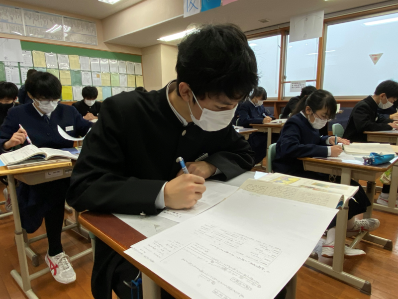 3年生は国語の授業で万葉集、古今和歌集、新古今和歌集に載っている和歌について学習しています。今日は自分の好きな和歌を選んで鑑賞文を書いて発表し合いました。また、それぞれの歌集に載っている「恋」についての和歌三首から好きな和歌を選んで投票し「恋の歌大賞」を決めました!