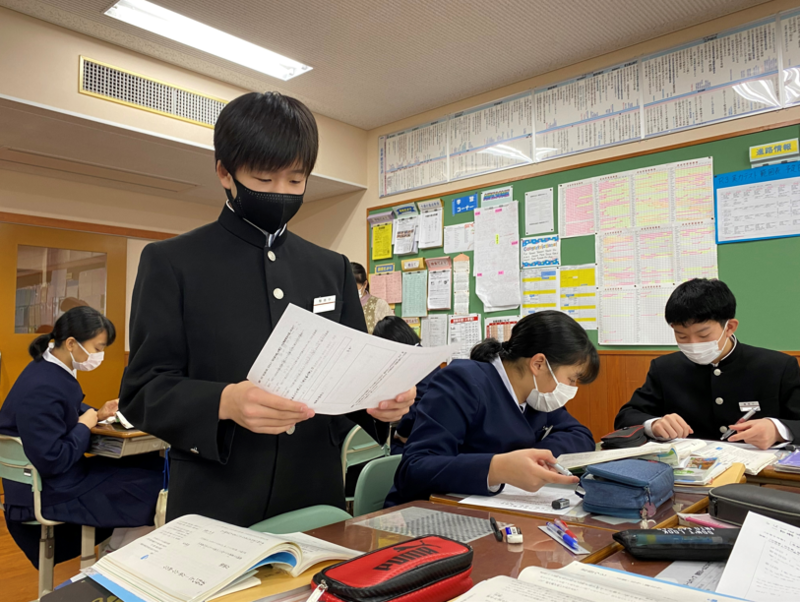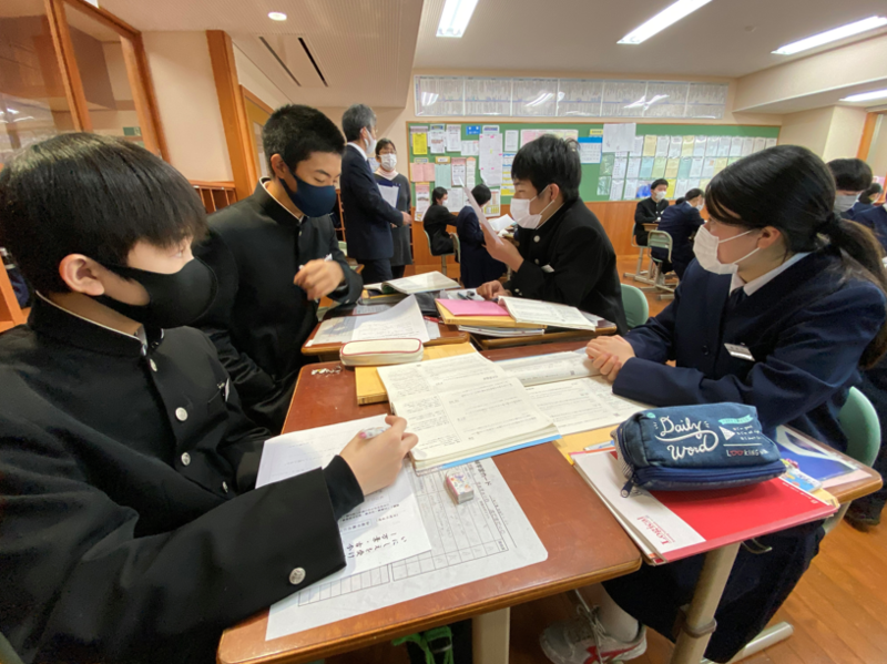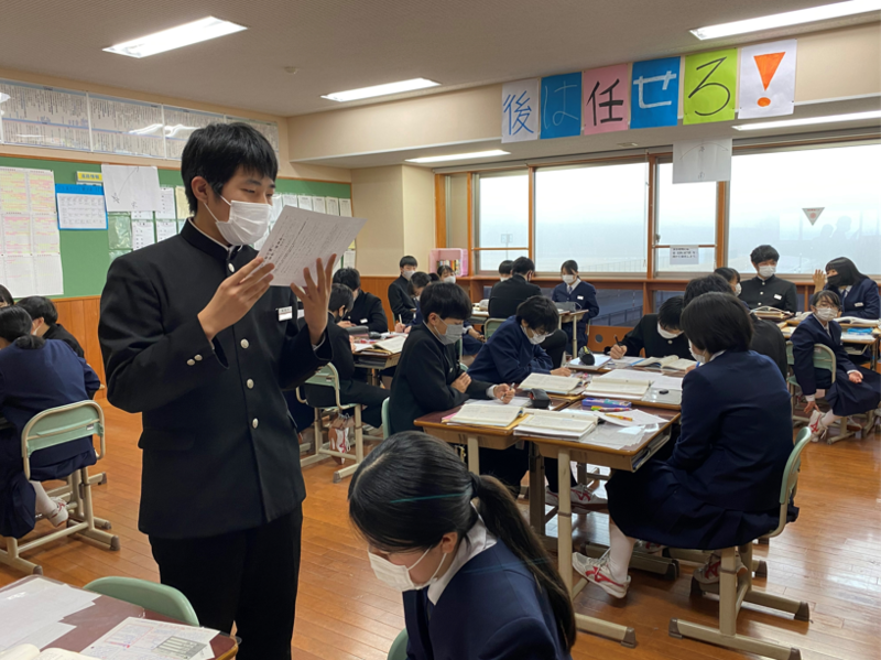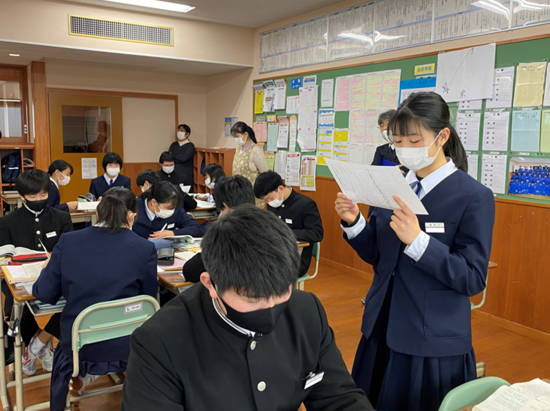 2021年12月17日 11時30分3年生は国語の授業で万葉集、古今和歌集、新古今和歌集に載っている和歌について学習しています。今日は自分の好きな和歌を選んで鑑賞文を書いて発表し合いました。また、それぞれの歌集に載っている「恋」についての和歌三首から好きな和歌を選んで投票し「恋の歌大賞」を決めました!