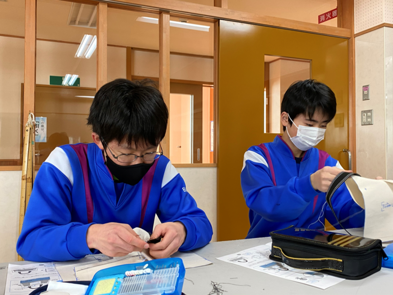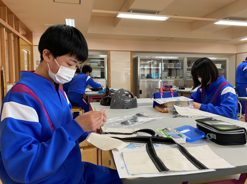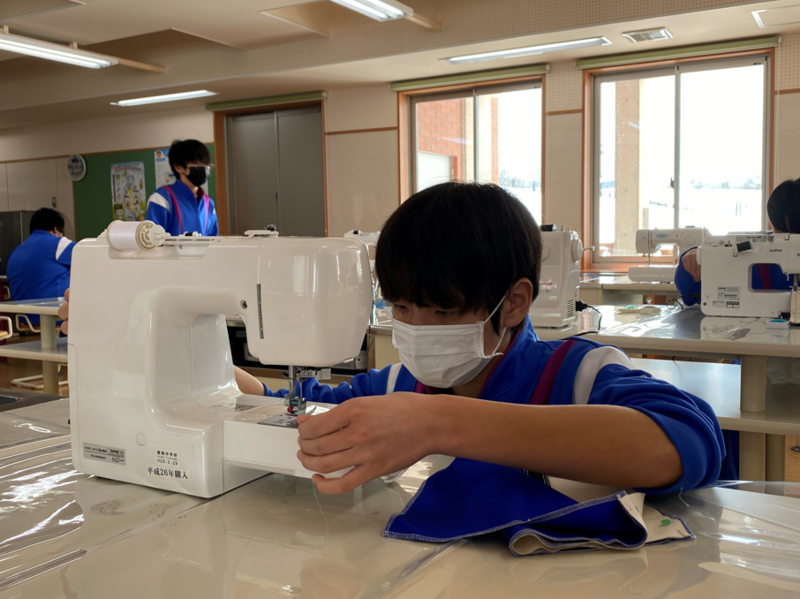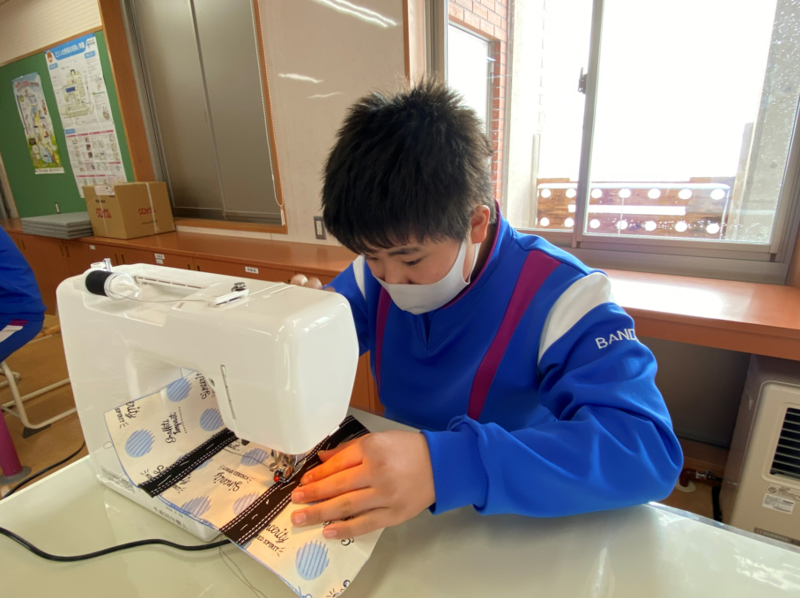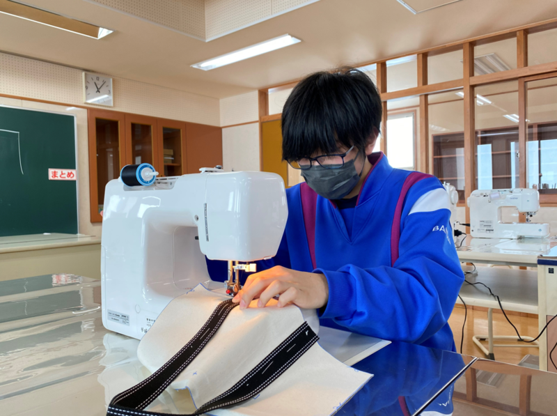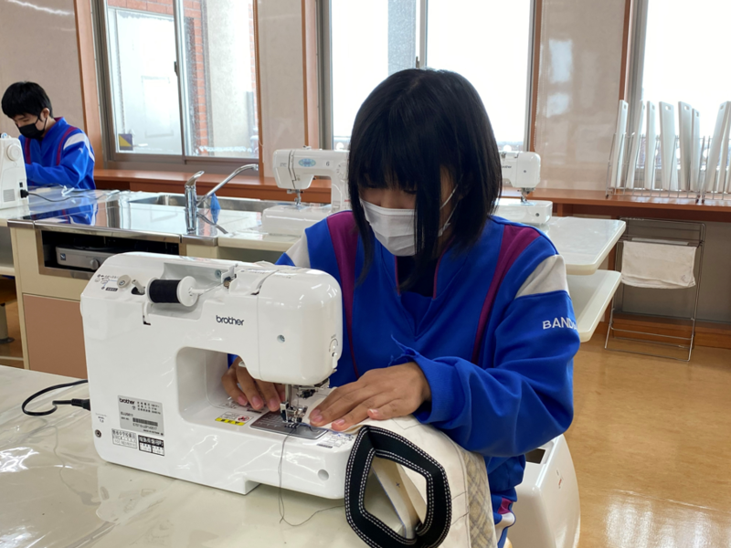 2年生の家庭科ではトートバッグづくりに取り組んでいます。ミシンや手縫いに一生懸命な2年生の姿を集めてみました
