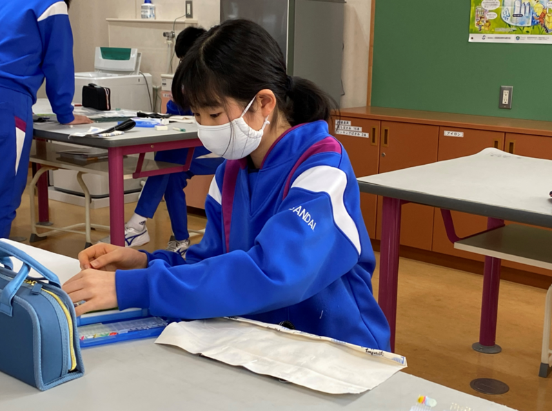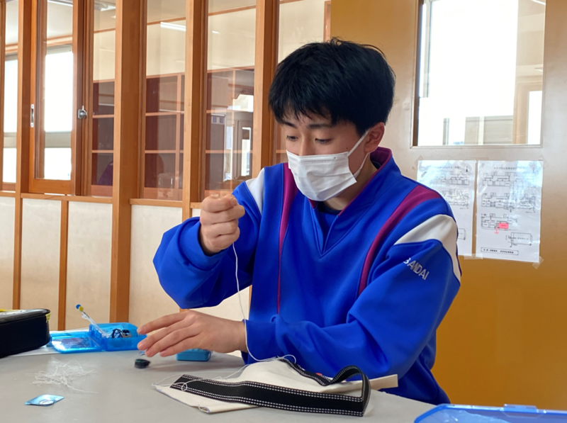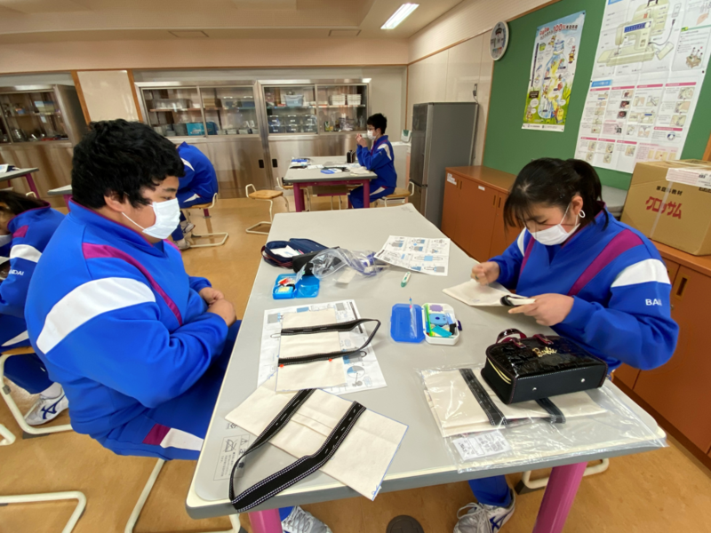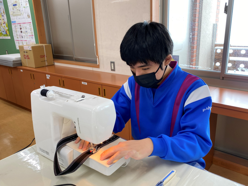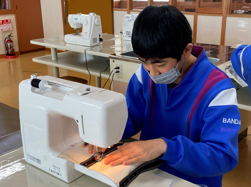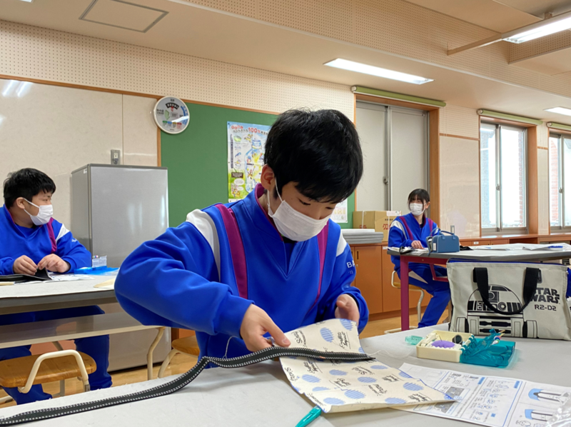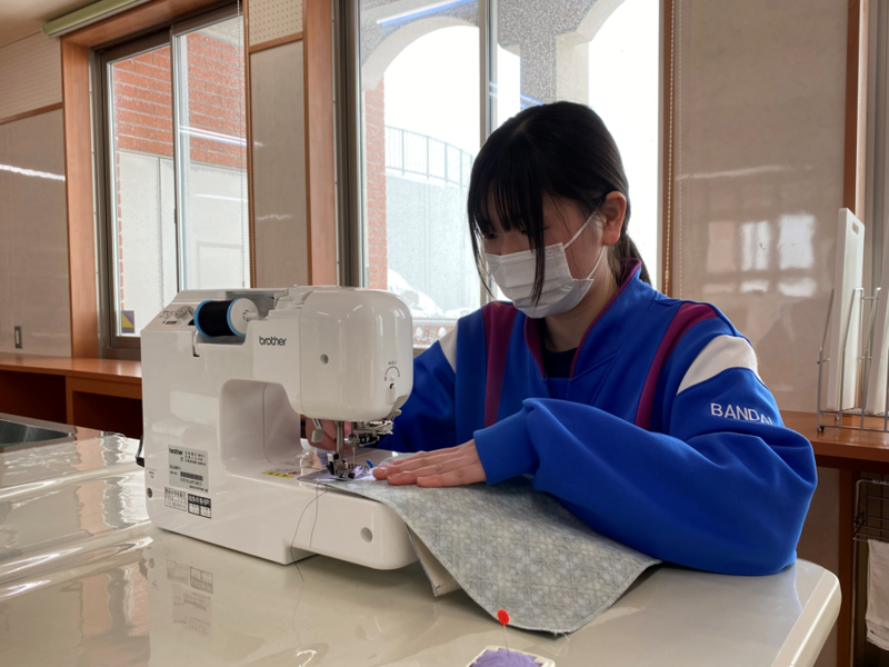 2年生の家庭科ではトートバッグづくりに取り組んでいます。ミシンや手縫いに一生懸命な2年生の姿を集めてみました