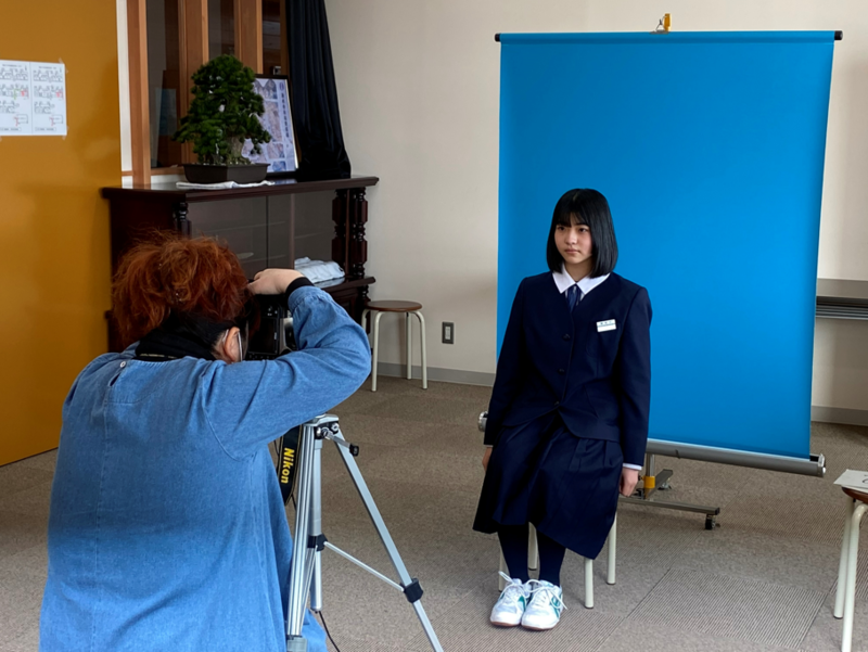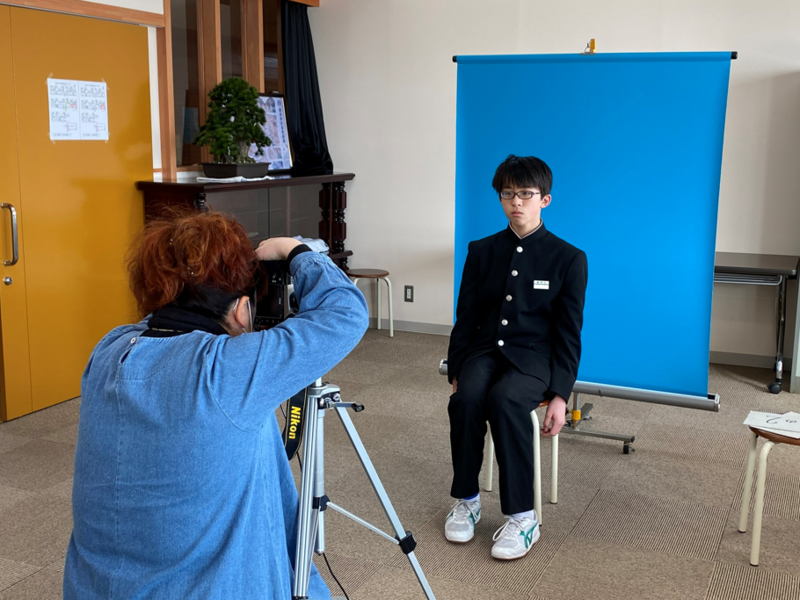 今日の6校時目に、1・2年生が来年度の身分証明書(IDカード)用の写真を撮影しました。写真屋さんに来ていただいて服装や姿勢など細かなところまで確認しながらの写真撮影となりました。緊張で表情が硬い生徒もいる反面、吹き出すほど笑ってしまう生徒もいました