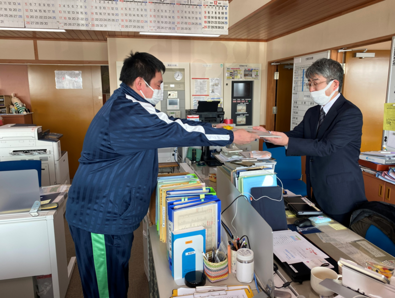 2022年3月25日 13時30分3/28の離任式を前に、本日の昼休憩時間に教職員だけでささやかな送別会を実施しました。今年度末の人事異動で転退職される4名の先生方に記念品を渡しました。4名の先生方からは、磐梯中学校での思い出など笑いあり涙ありのごあいさつをいただきました 磐梯中学校の先生方はチームワークがとてもよく、今年度一年間、校務センターはいつも笑い声が絶えない明るい雰囲気でした。最後の最後まで雰囲気のよさが現れた心温まる送別会でした