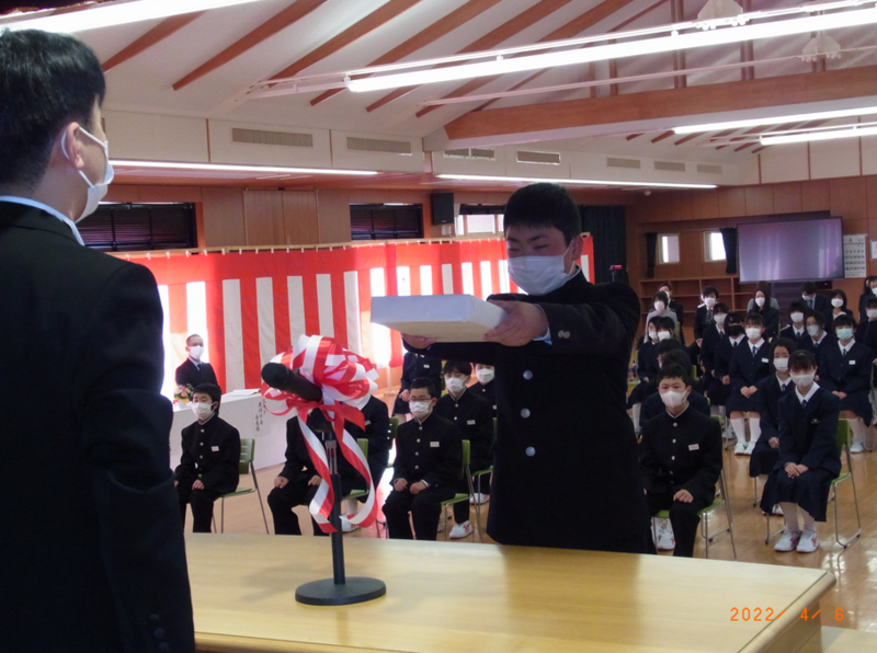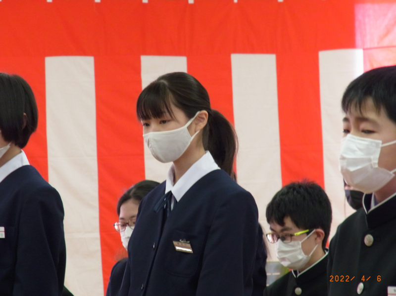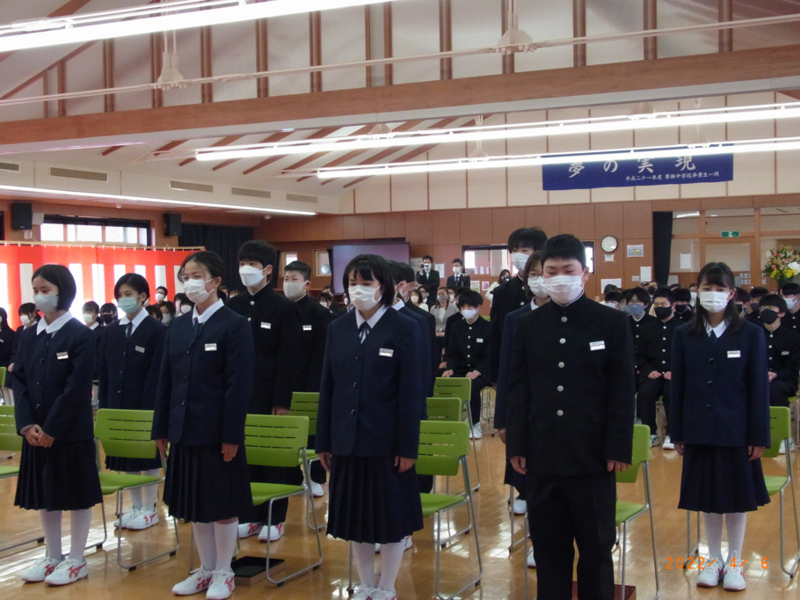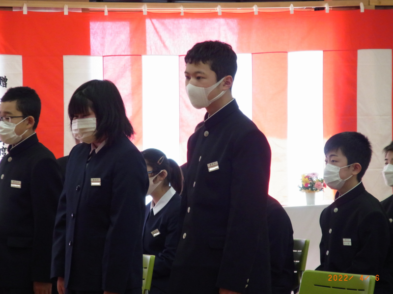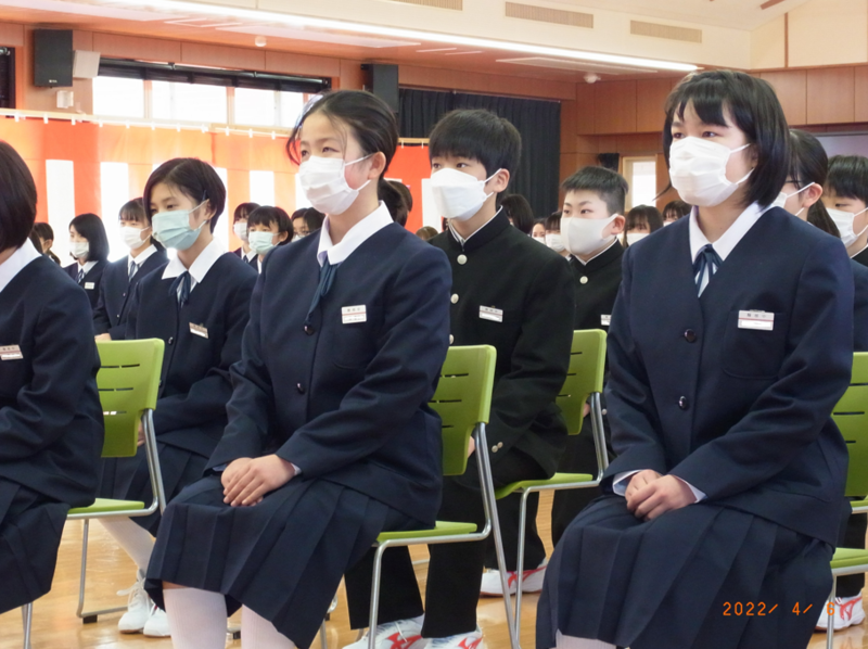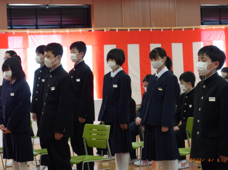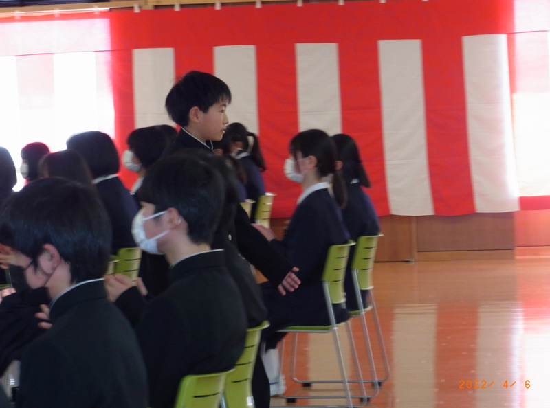 2022年4月7日 08時30分昨日行われた入学式の様子です。28名の新入生は、呼名のときの返事、式の最中の姿勢など立派な態度で入学式に臨んでいました