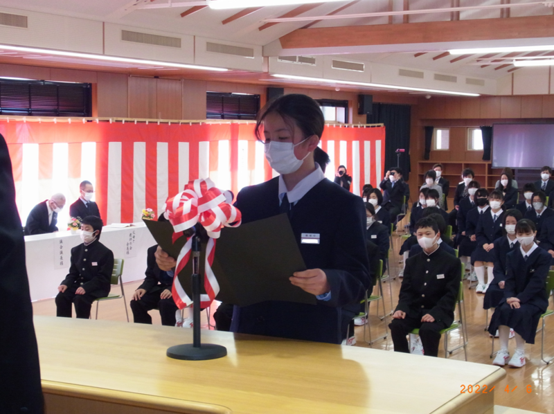新入生代表のA・Yさんが誓いの言葉を述べました。内容も堂々とした態度も大変素晴らしかったですよ