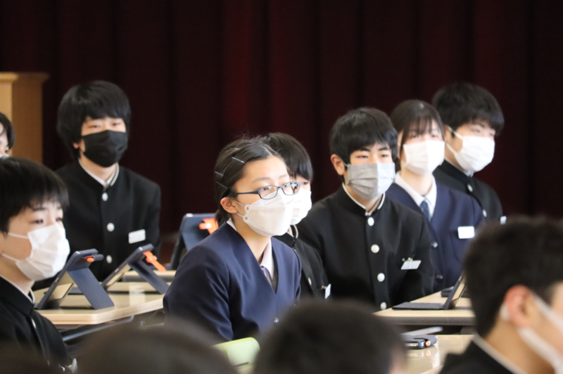 2022年4月8日 08時40分昨日の1校時目に全校オリエンテーションを行いました 中学校生活のルールや学習、部活動や給食などについて、それぞれの担当の先生からお話がありました。ときどき生徒への質問やインタービューもあったこともあり、2・3年生はほとんどわかっている話でしたが、最後まで気を抜くことなく(気を抜けず!?)、しっかりと話を聴いていました。もちろん、はじめて知ることばかりの1年生も真剣に話を聴いていました!
