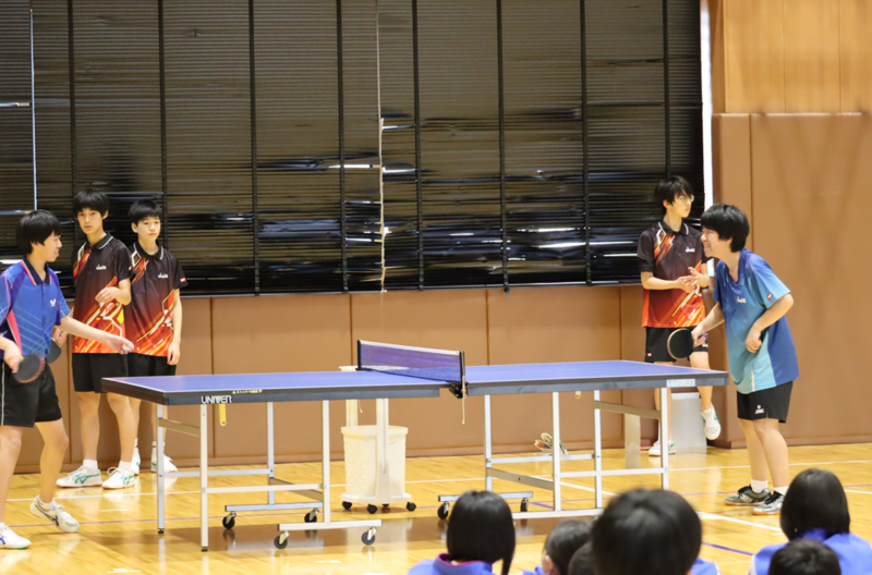 昨日の5校時目に対面式を行いました。生徒会や各委員会の紹介、各部活動の趣向を凝らした紹介など、1年生はもちろん、全校生がニコニコ楽しめるひとときでした