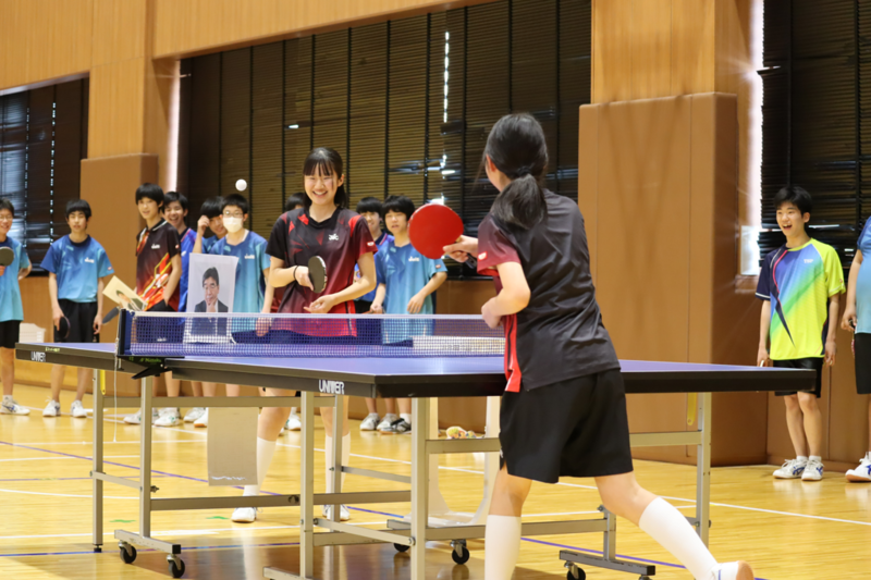 顧問のK先生の写真を狙ってのスマッシュが見事に決まりました これにはK先生も苦笑いするばかり…