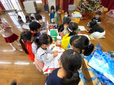 年長さんと年中さんはなにやらクリスマスのための活動のようです。