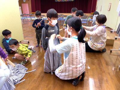 明日は、年少さんと年中さんの予行です。午後の時間にそれぞれお邪魔してみました。