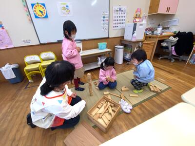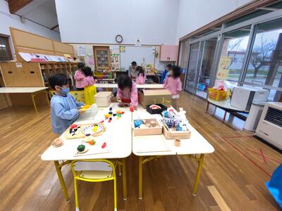 発表会の練習を終えて、保育室でそれぞれの遊びを楽しむ年中さんの様子です。リラックスも大切です。