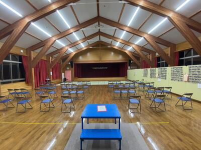 さて、明日はいよいよ保育発表会です。会場の準備は整い、明日のこどもたちの精一杯の頑張りを待つばかりです。