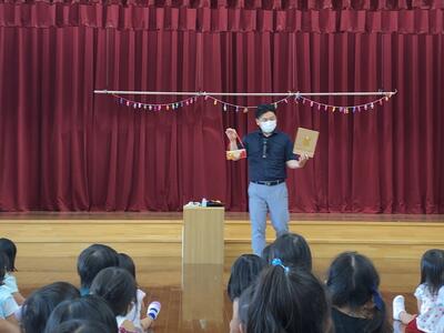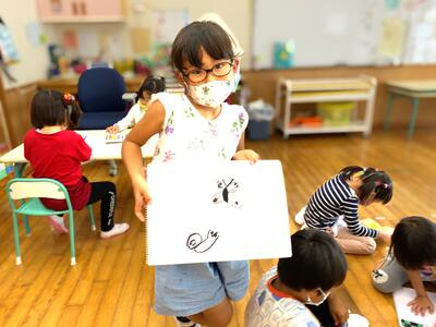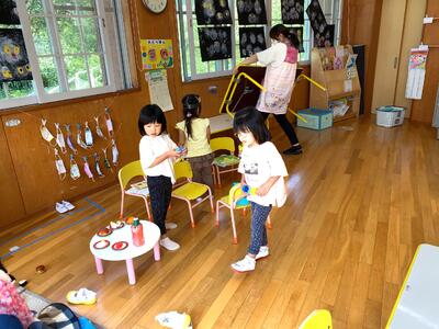 7月16日に、夏祭りを行いました。保護者の皆様をお呼びしてできなかったのが残念でしたが、子どもたちは、踊りや輪投げ、ヨーヨー、くじ引き、を楽しみ、遊戯室に入ってからは、マジックショーと、イアン先生のオリジナルソングを楽しみました。