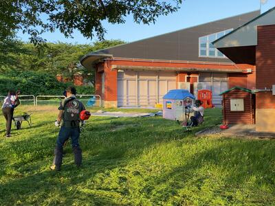 この日は、年中児の保護者の皆様が、奉仕作業として、園庭や中庭の草刈りをしてくださいました。ていねいに、心を込めて作業をしてくださいました。ありがとうございました。