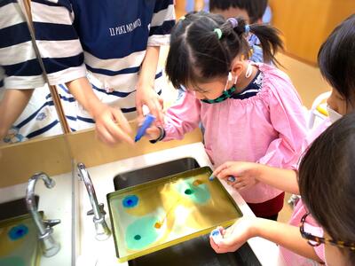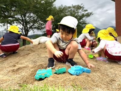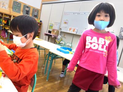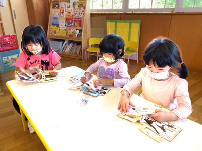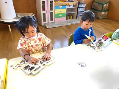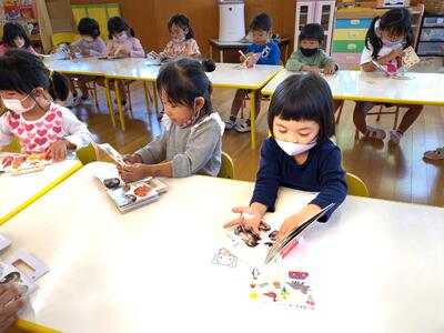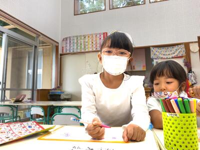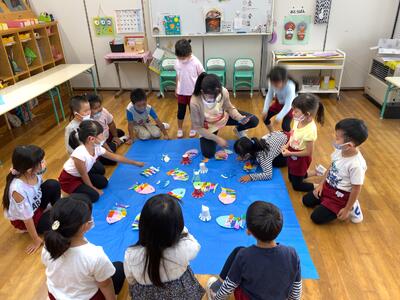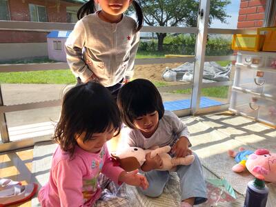9月6日(月)、年少さんは、中庭や教室でそれぞれ好きな遊びを楽しみました。