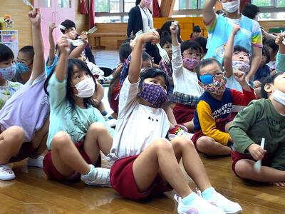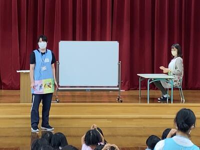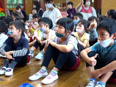 9月3日(金)に給食指導を行いました。磐梯一小の栄養教諭の先生に来ていただき、良い姿勢で食べること、正しいスプーンの持ち方を教えていただきました。
